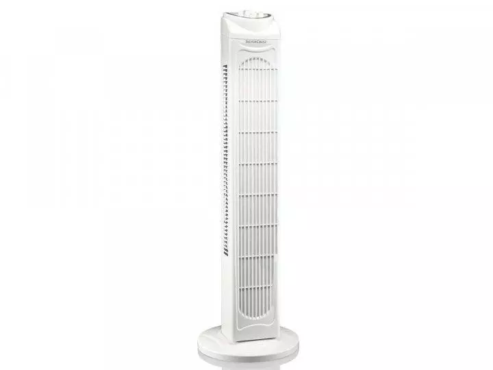 SILVERCREST STV 45 D3 колонний вентилятор  3 рівнями регулювання вентилятора можливе коливання на 90 градусів Безступінчастий автоматичний таймер на 120 хвилин Ергономічний пристрій керування Стабільна стійка на широкій ніжці 50/60 Гц матеріал : ABS Основа: діаметр близько 24 см Висота близько 76 см (включаючи ніжку) Довжина кабелю: близько 180 см вага: близько 2,466 кг