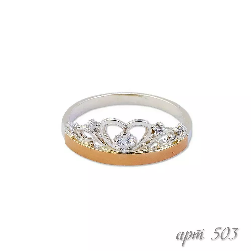 Серебряное кольцо корона с золотой пластиной и вставками с фианитов