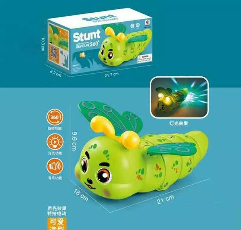 Музична гусінь YJ 3045 (96/2) підсвічування, мелодії, кумедні звуки, колесо вільного ходу, видовжує тулуб, рухає крильцями, 2 режими, в коробці