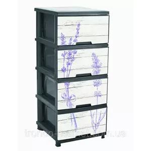 Новинка от украинского производителя АЛЕАНА - комод на четыре ящика с декором. Комод (фр. commode — «удобный») — предмет французской мебели с выдвижными ящиками для хранения одежды. Разработан с целью помочь вам грамотно организовать хранение вещей в вашем доме. ?зготовлен из качественного полипропилена, удобный и вместительный. ?спользуется как дополнение к основной мебели и к туалетному столику. В нем можно хранить хранить ювелирные украшения, косметику и другие необходимые вещи. Оптимально подобранный размер : высота 95,5 см, ширина 39,5 см, глубина 46,5 см , разнообразный декор и изысканные цвета на любой, даже самый требовательный вкус с легкостью впишется в любой интерьер. Для любителей классики подойдет - Ротанг или Дерево, для романтических натур - Париж или Лаванда, для маленьких девочек - Совы, Медведи,Девочки, для мальчиков -Ралли,Совы, Медведи. Каждыйнайдет для себя красивый дизайн. Правильно организованное хранение,при этом еще и радущее глаз гарантирует порядок в доме и в мыслях. Проверьте на себе! :)