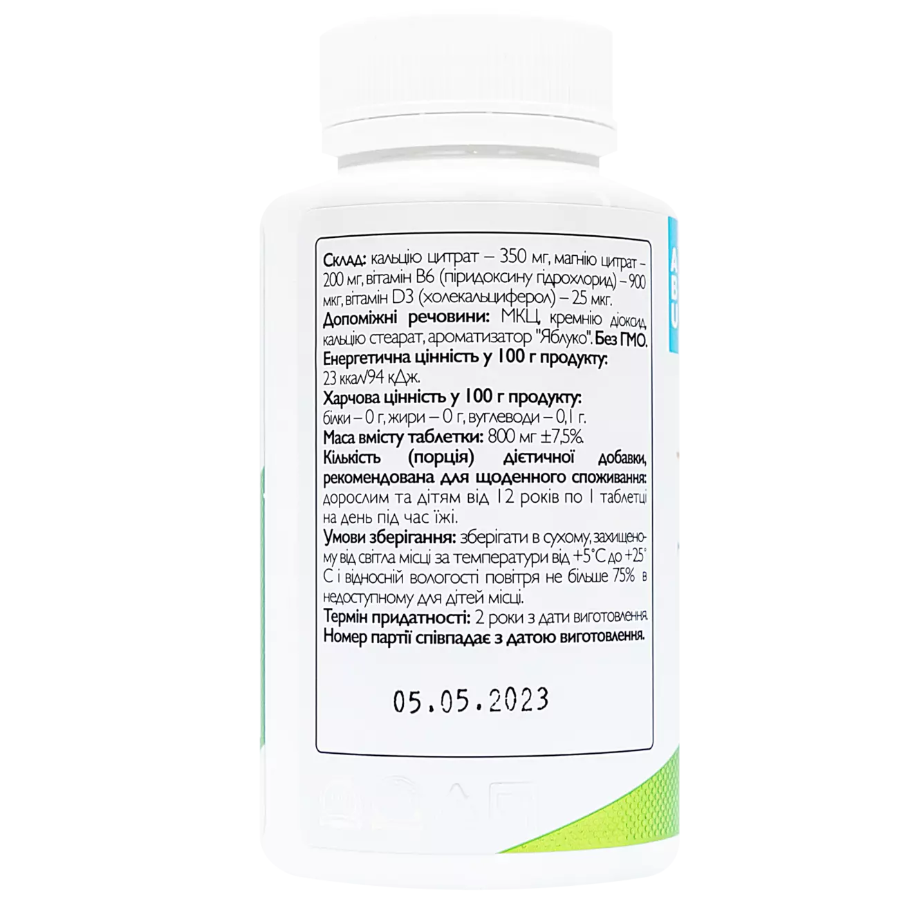 Кальцію цитрат – 350 мг, магнію цитрат – 200 мг, вітамін
