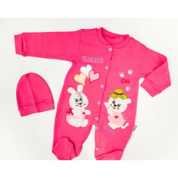 Комплект на выписку из роддома: комбинезон трикотажный, чепчик. Выполнен из мягкого хлопкового трикотажа и имеет спереди застежку на кнопках. Чепчик не только оберегает лобик и ушки ребенка, но и завершает образ.