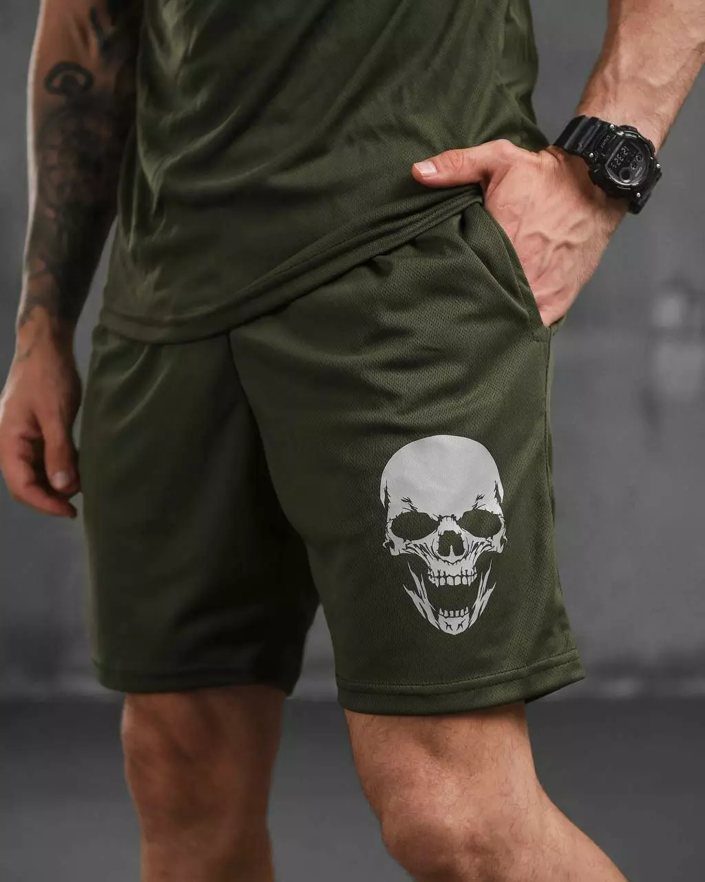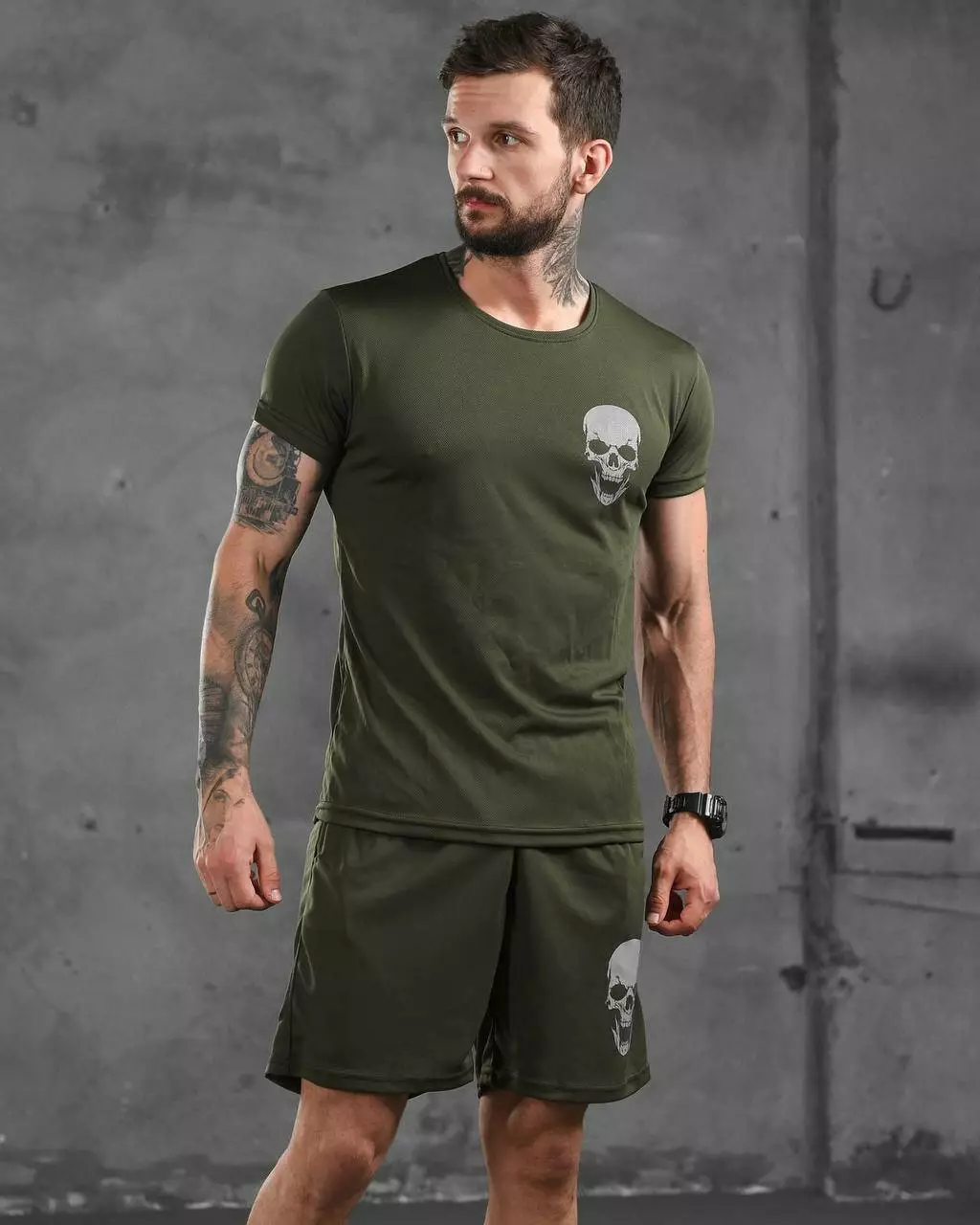 Підготуйтеся до літа з нашим стильним чоловічим комплектом, що містить комфортні шорти та футболку. Шорти виготовлені з легкого дихаючого матеріалу, який ідеально підходить для активного способу життя. У них зручний пояс на зав'язках для ідеальної посадки. Футболка виготовлена з поліестеру, що забезпечує еластичність і комфорт. Вона має стильний принт на грудях і чудово поєднується із шортами.