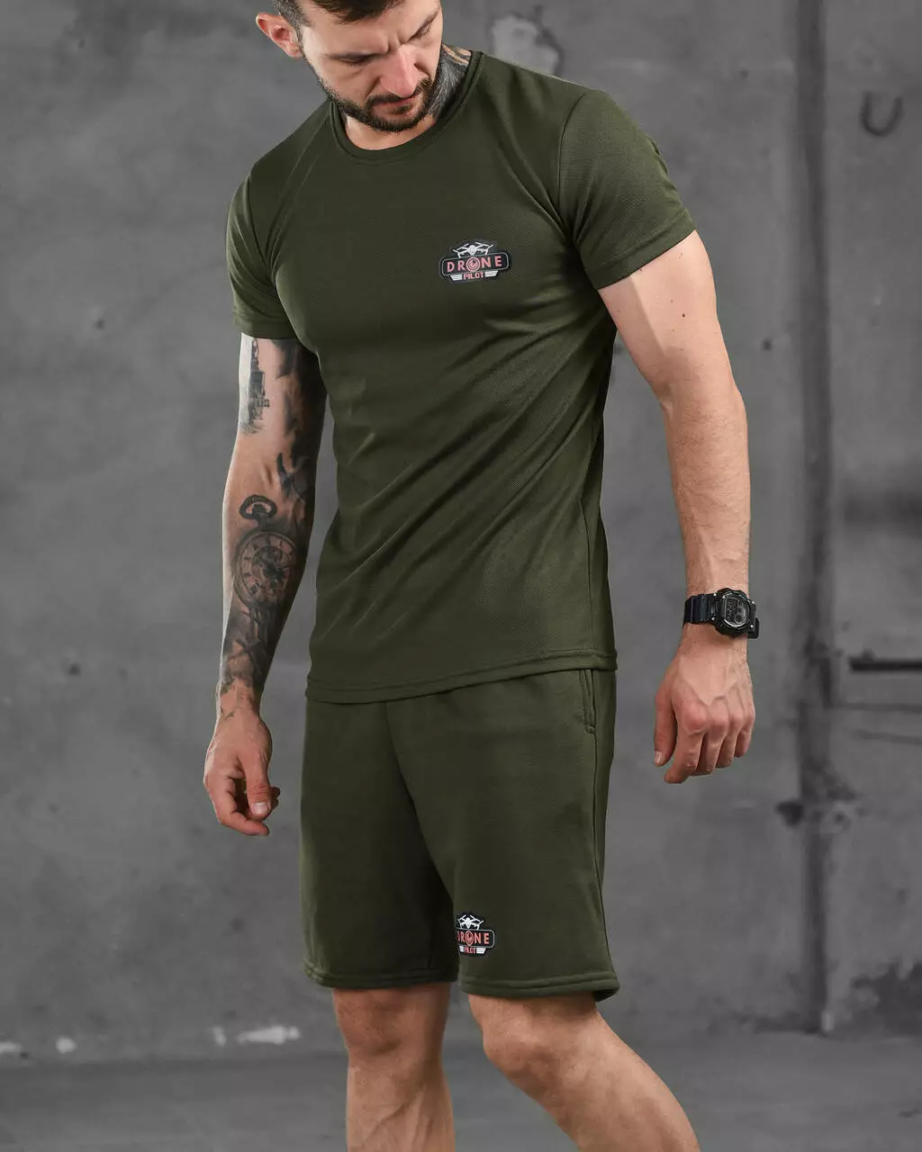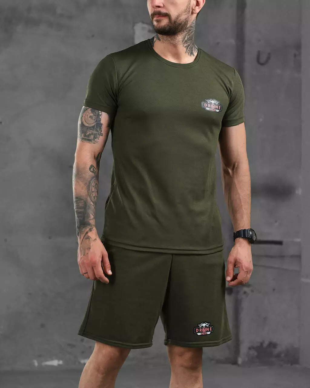 Підготуйтеся до літа з нашим стильним чоловічим комплектом, що містить комфортні шорти та футболку. Шорти виготовлені з легкого дихаючого матеріалу, який ідеально підходить для активного способу життя. У них зручний пояс на зав'язках для ідеальної посадки. Футболка виготовлена з поліестеру, що забезпечує еластичність і комфорт. Вона має стильний принт на грудях і чудово поєднується із шортами.
