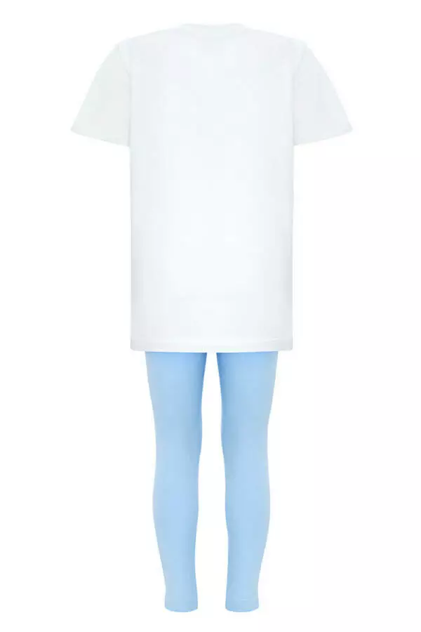 Лосини в комплекті виконані у ніжно-блакитному кольорі, що гармонійно поєднується з принтом на футболці. Лосини підходять як для активних ігор, так і для повсякденного носіння, гарантуючи дитині комфорт протягом дня.