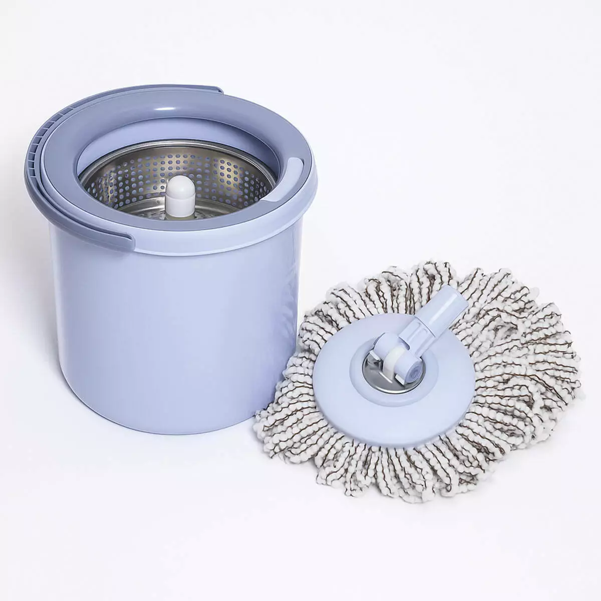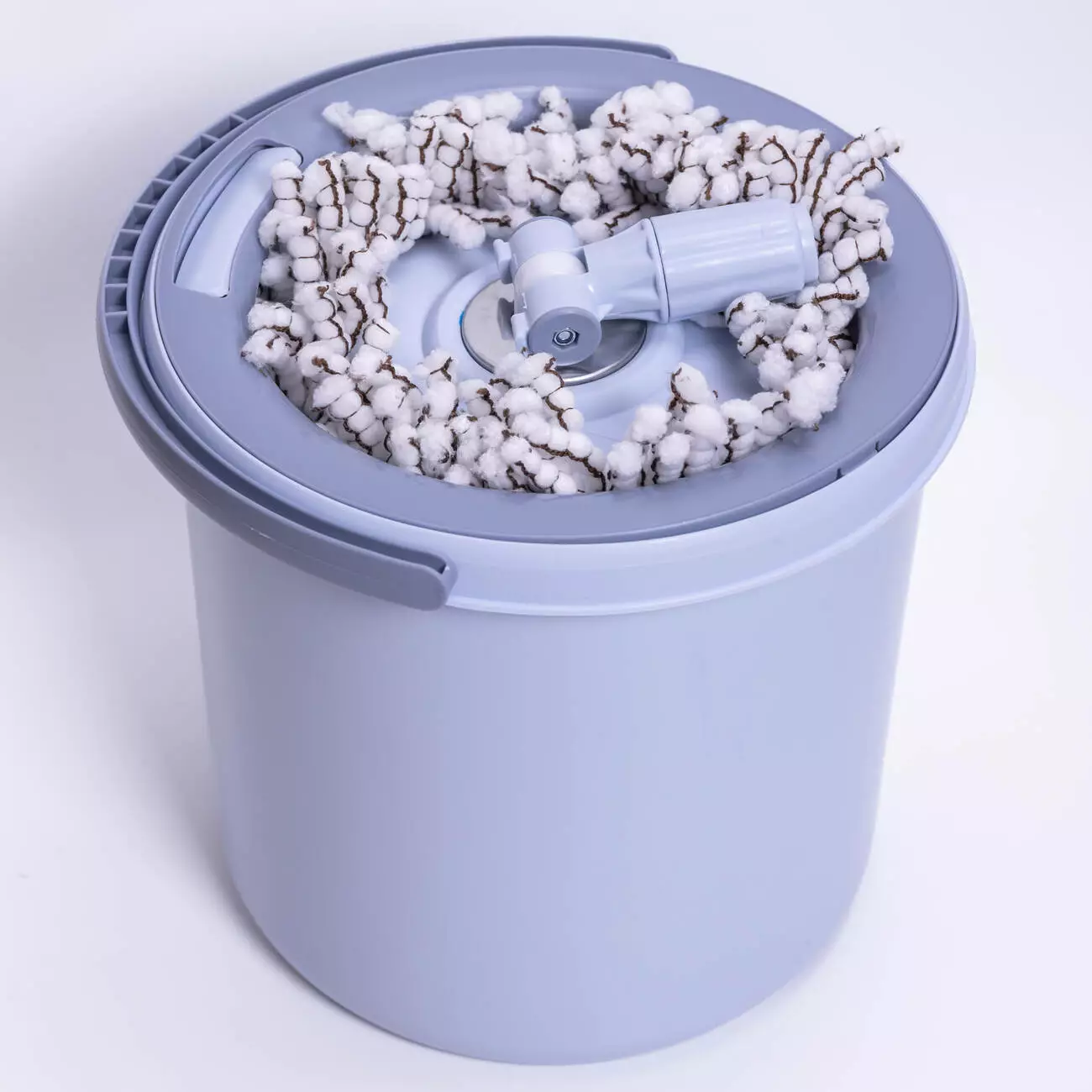 Комплект для прибирання включає мотузкову швабру та пластикове відро з механізмом віджиму. Вага набору становить 1.5 кг, що робить його зручним у використанні та переміщенні. Відро компактне за розмірами — висота 27 см і діаметр 27 см, тому легко поміщається навіть у невеликих приміщеннях.