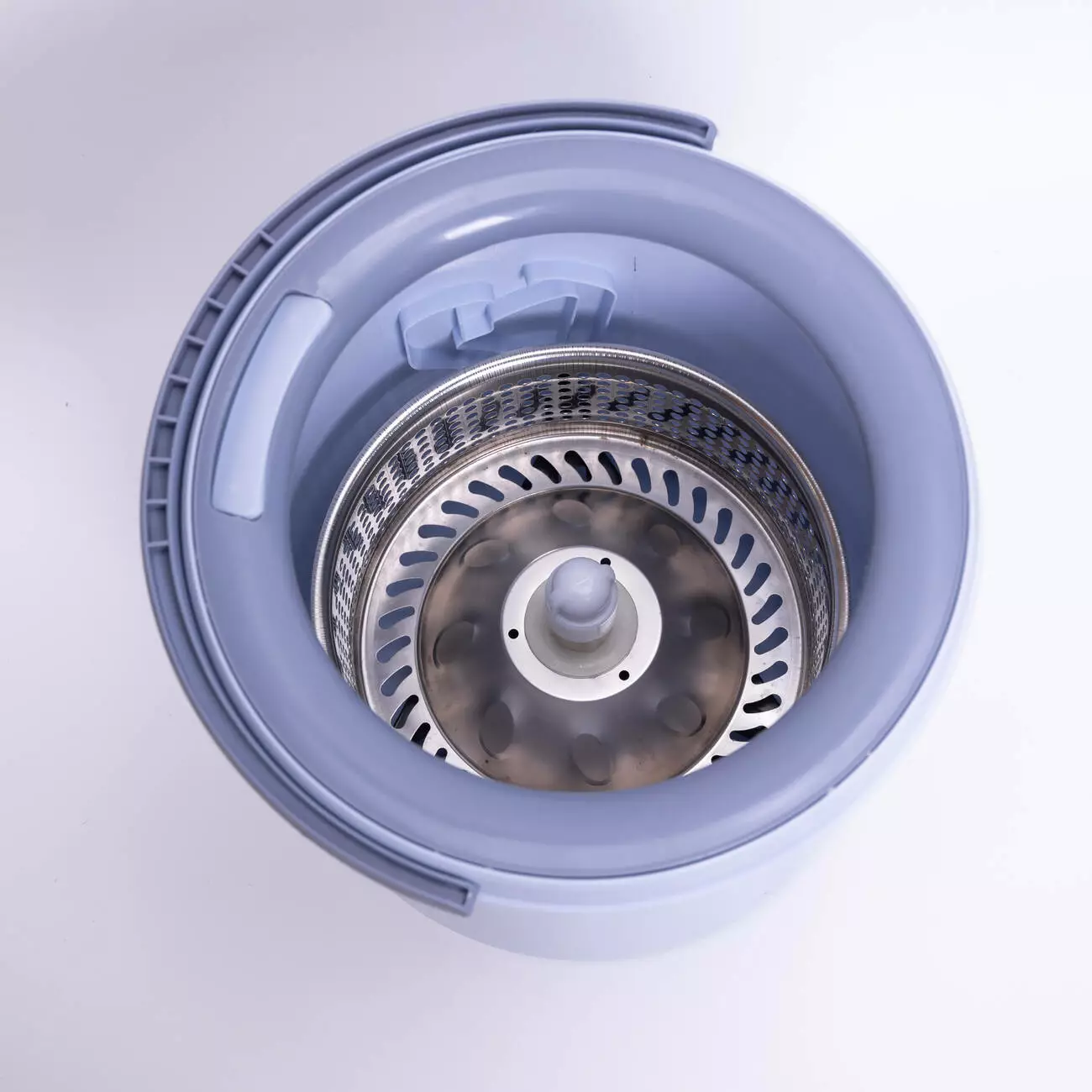 Механізм віджиму розташований безпосередньо всередині відра, що дозволяє уникати прямого контакту рук з водою. Для віджиму використовується металева корзина з дрібними отворами, які ефективно видаляють зайву вологу з насадки, забезпечуючи готовність швабри до подальшого використання.