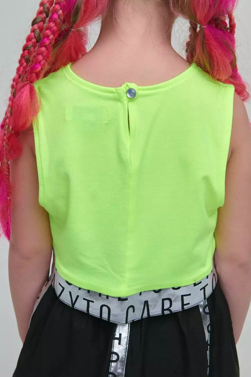 - Топ салатовий. Укорочена довжина. Кругла горловина. Без