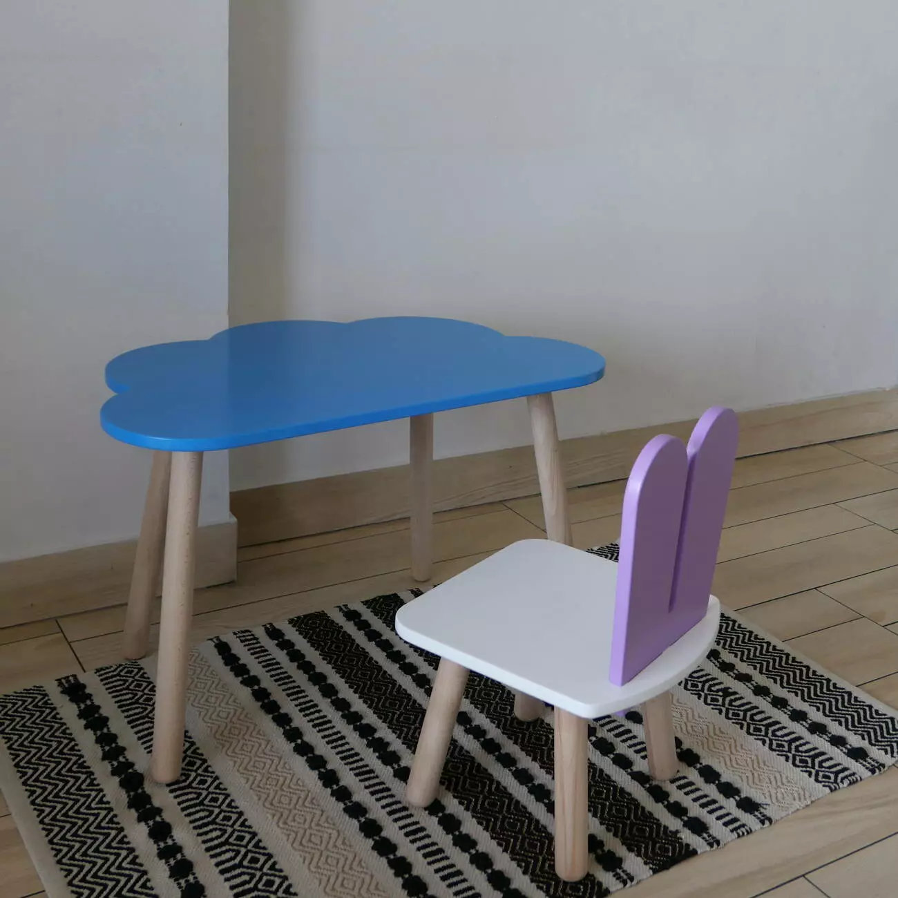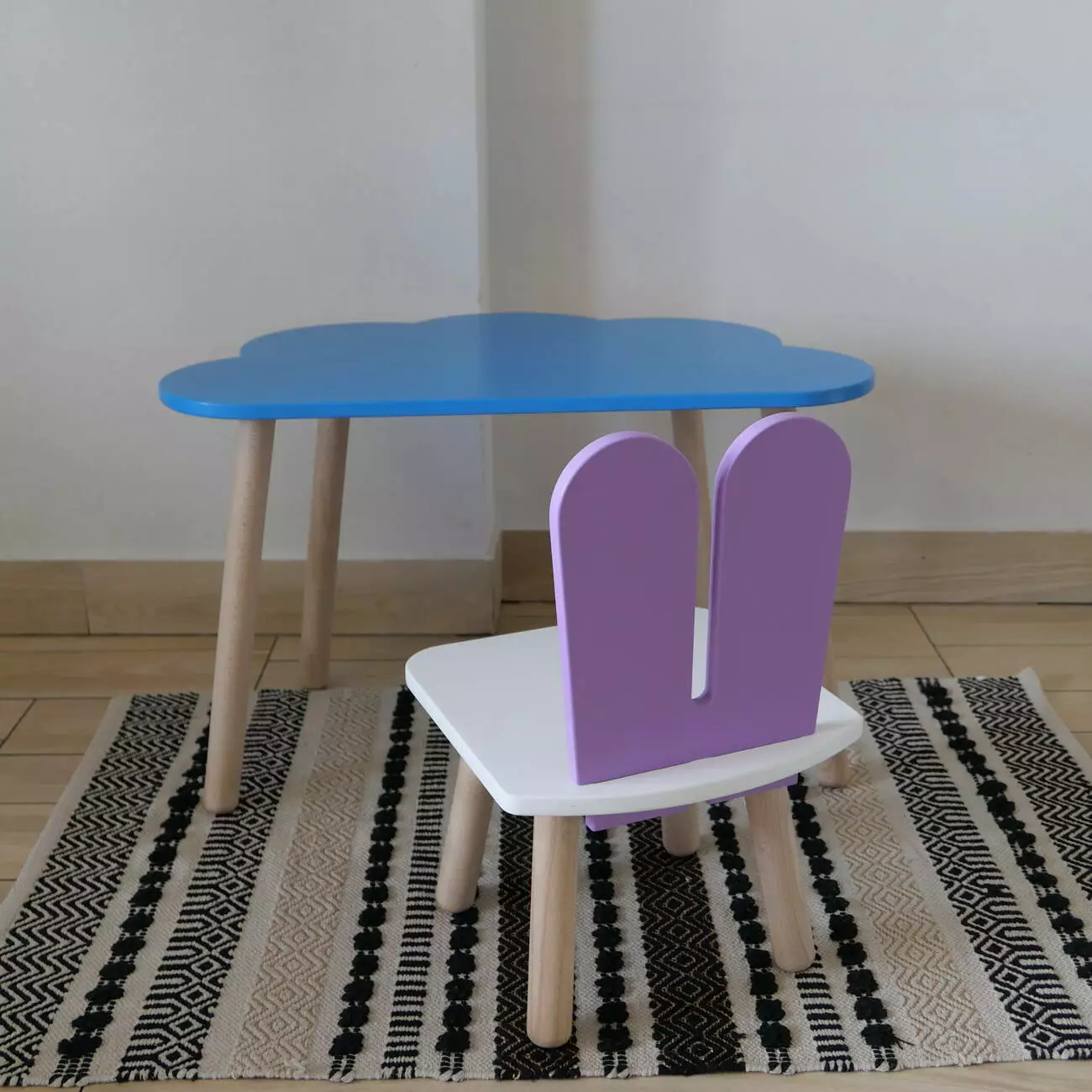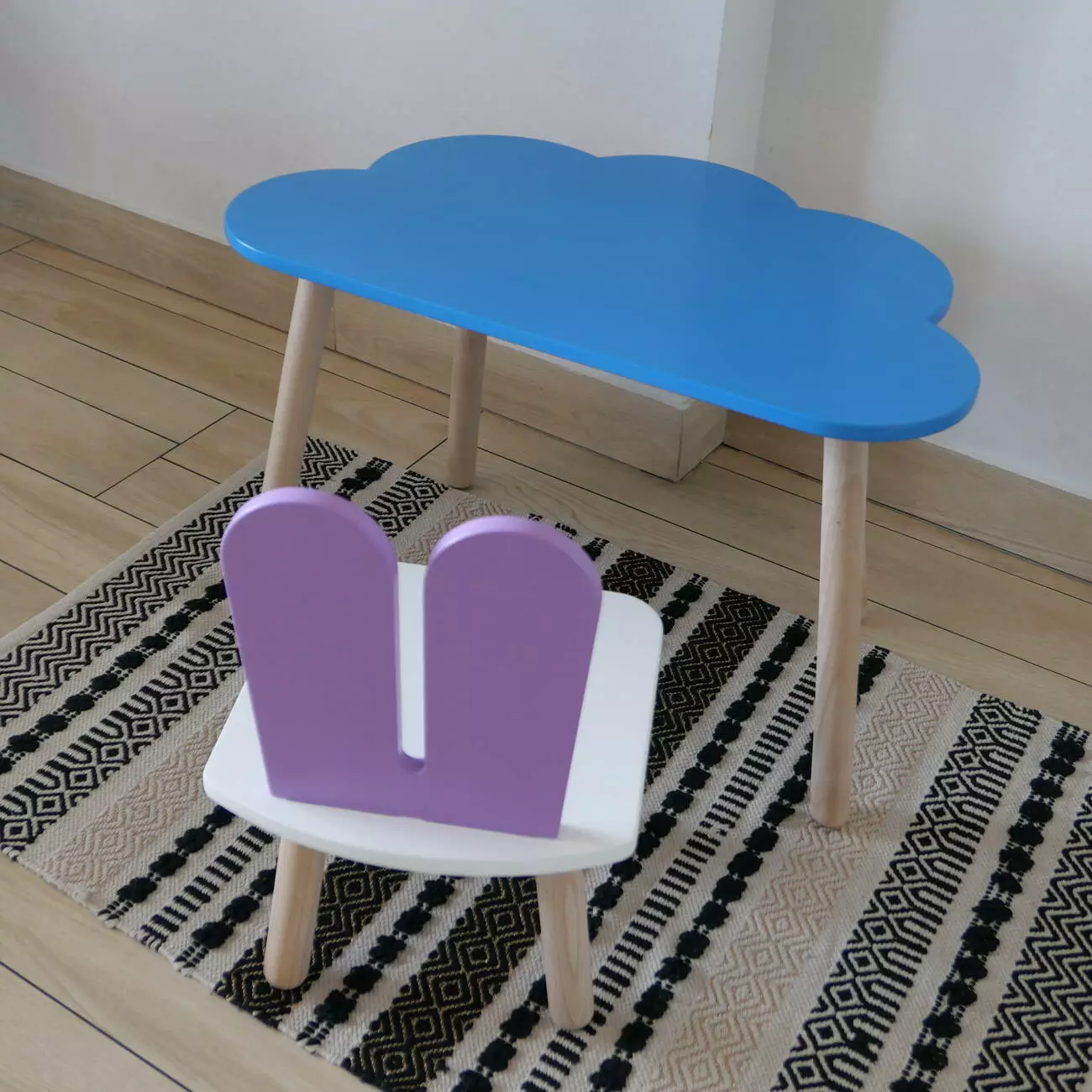 Комплект стіл та стул дитячий ChildWood - Set Стіл блакитний хмаринка + стілець білий бузковий Зайчик (Фанера)