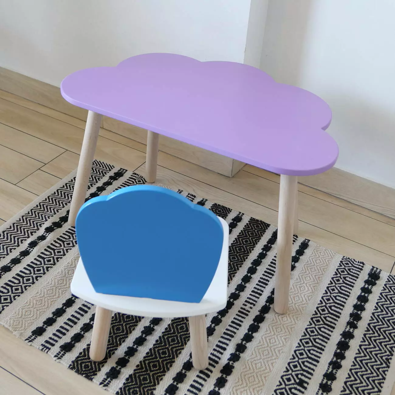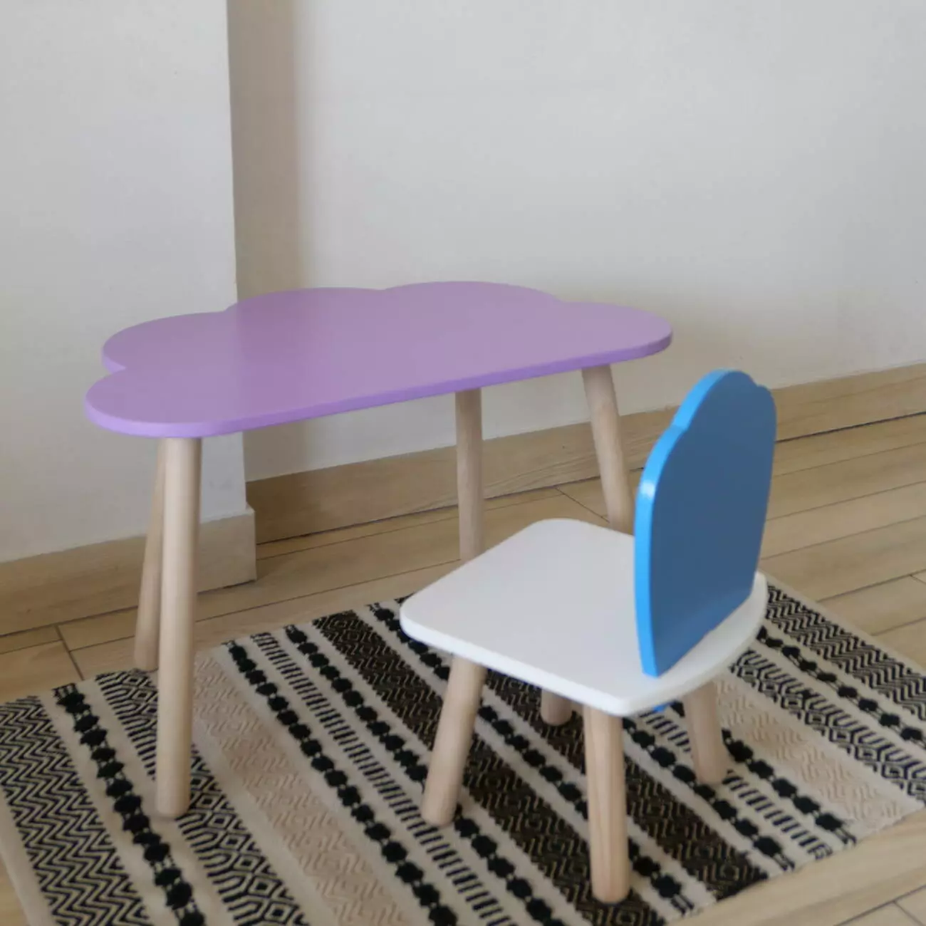 Комплект стіл та стул дитячий ChildWood - Set Стіл бузковий хмаринка + стілець білий блакитний Мушля (Фанера)