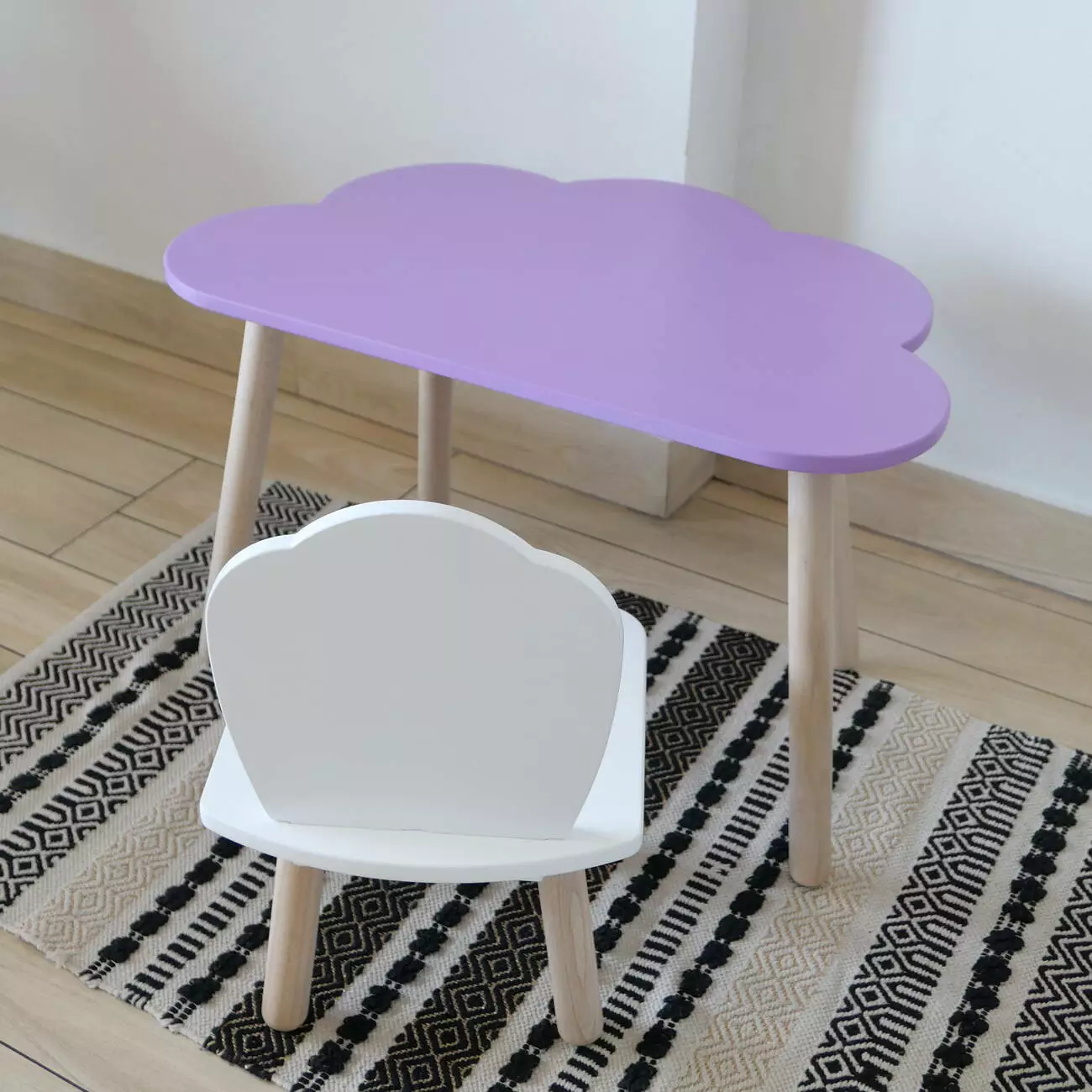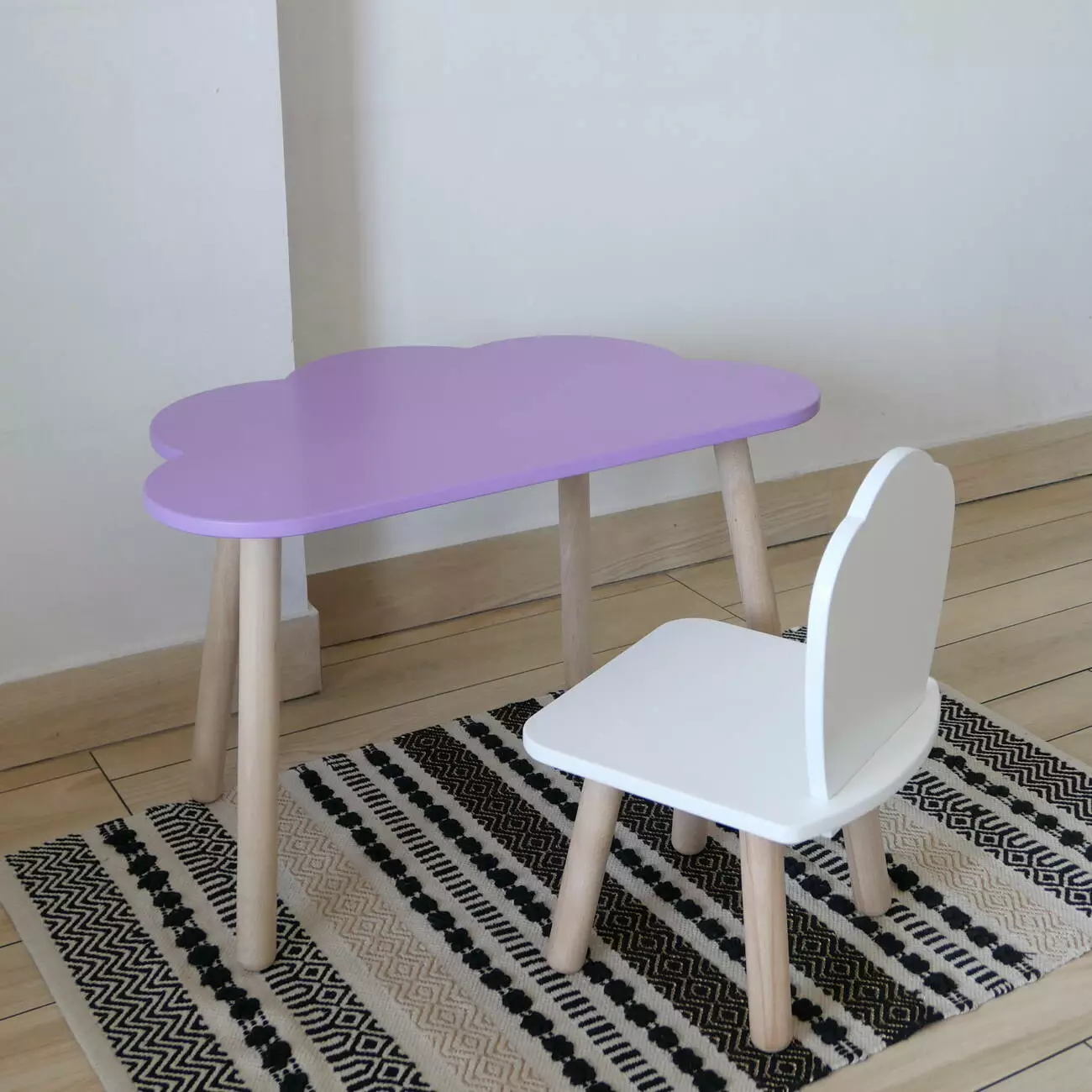 Комплект стіл та стул дитячий ChildWood - Set Стіл бузковий Хмаринка + стілець білий Мушля (Фанера)