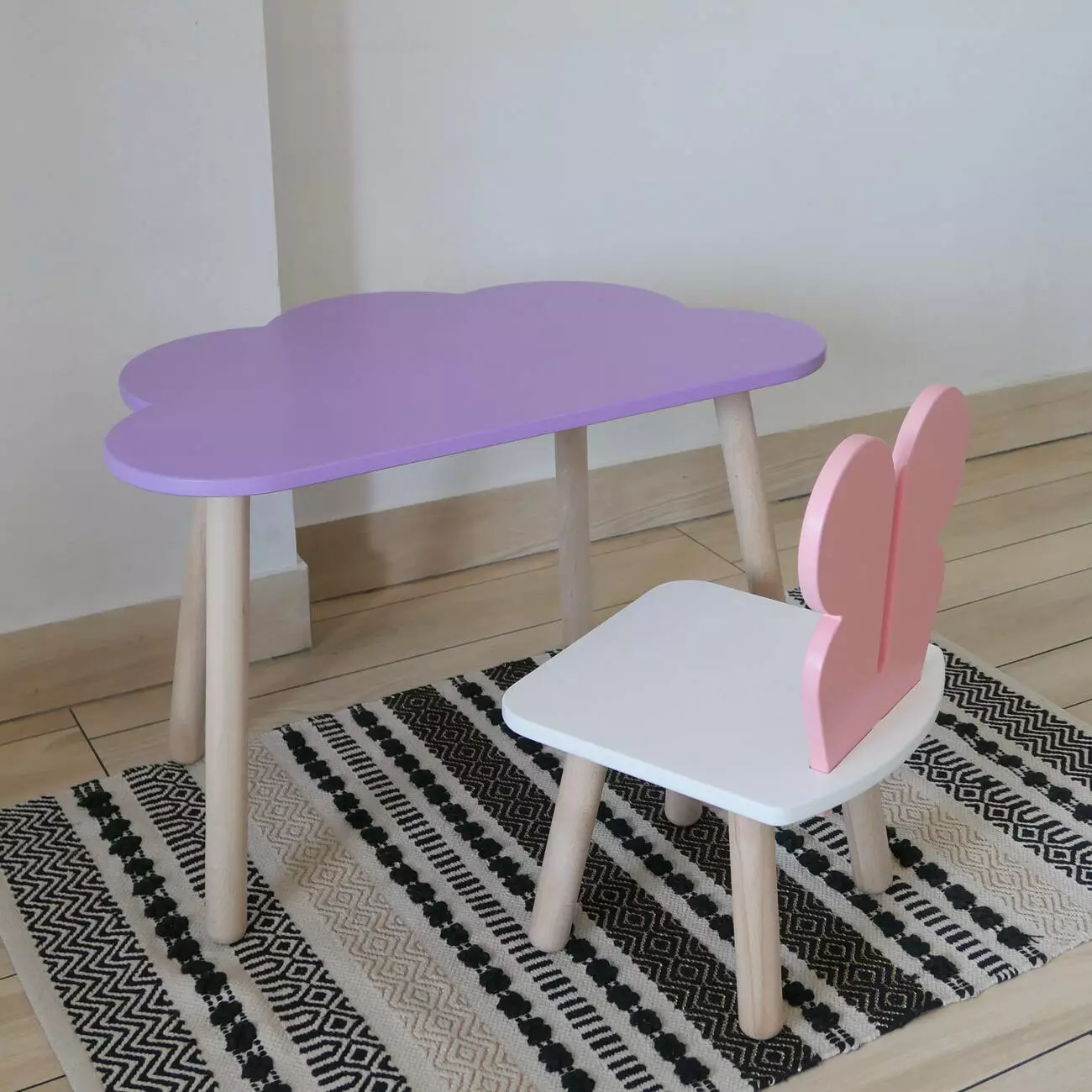Комплект стіл та стул дитячий ChildWood - Set Стіл бузковий хмаринка + стілець білий рожевий Метелик (Фанера)