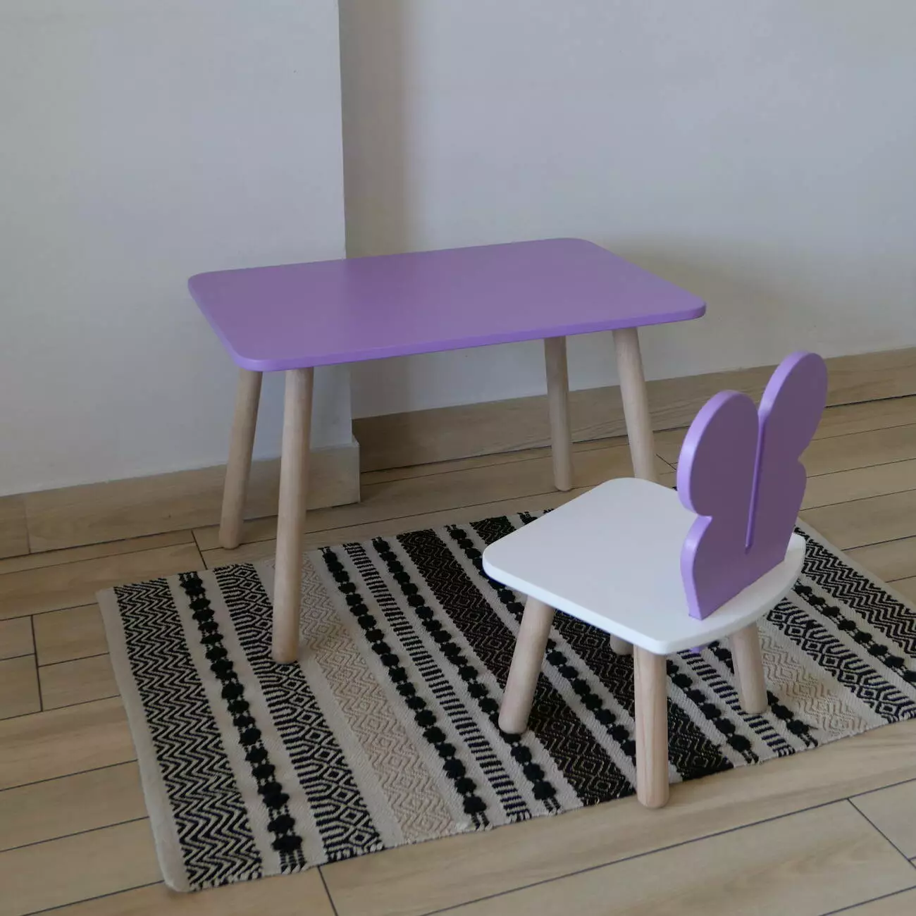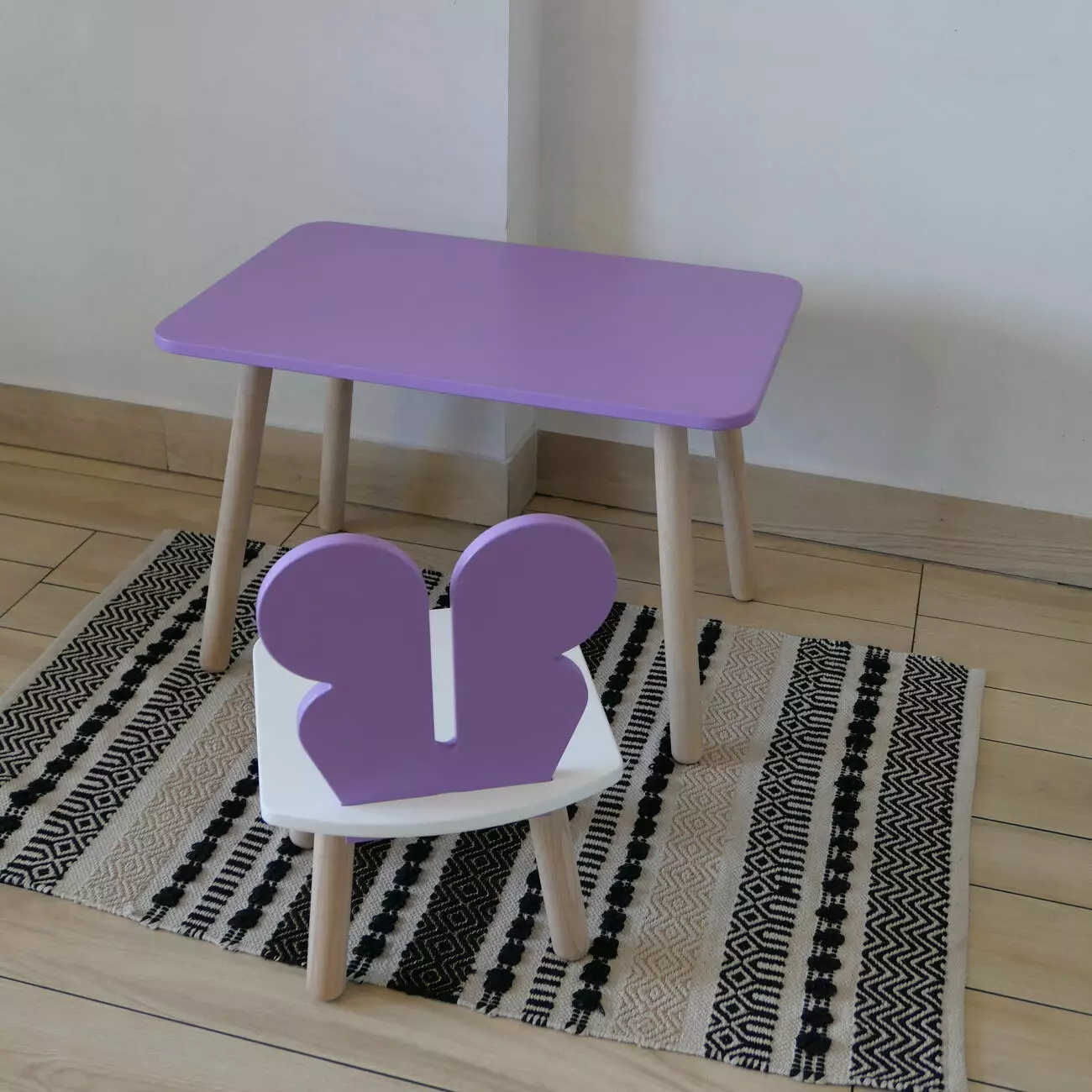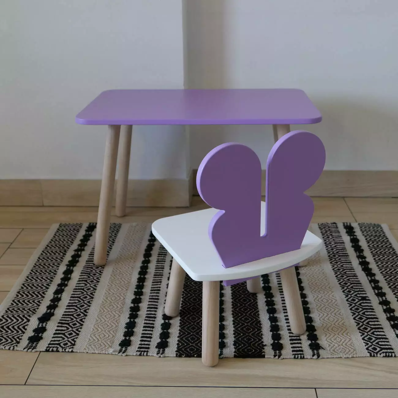 Комплект стіл та стул дитячий ChildWood - Set Стіл бузковий прямокутний + стілець білий бузковий Метелик (Фанера)