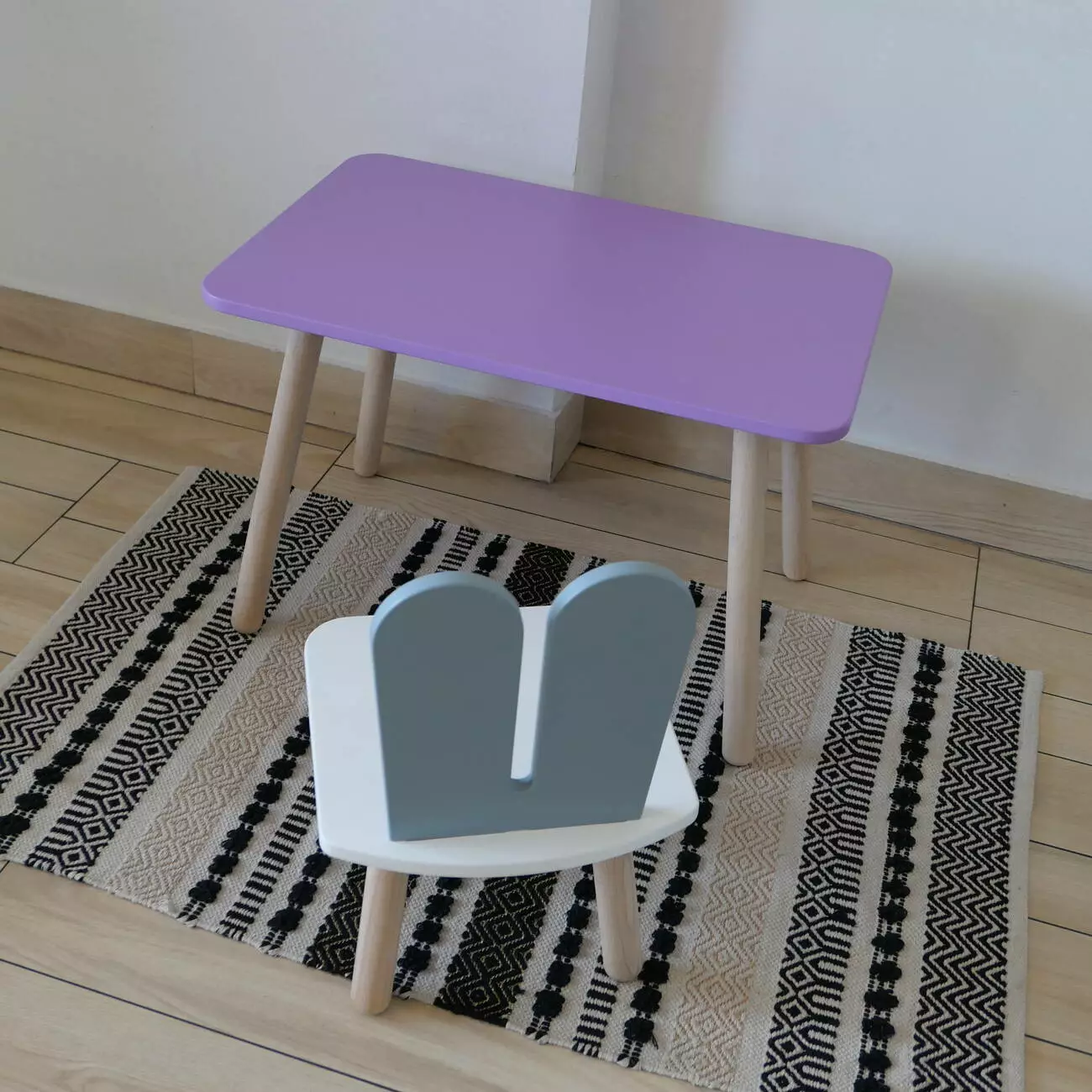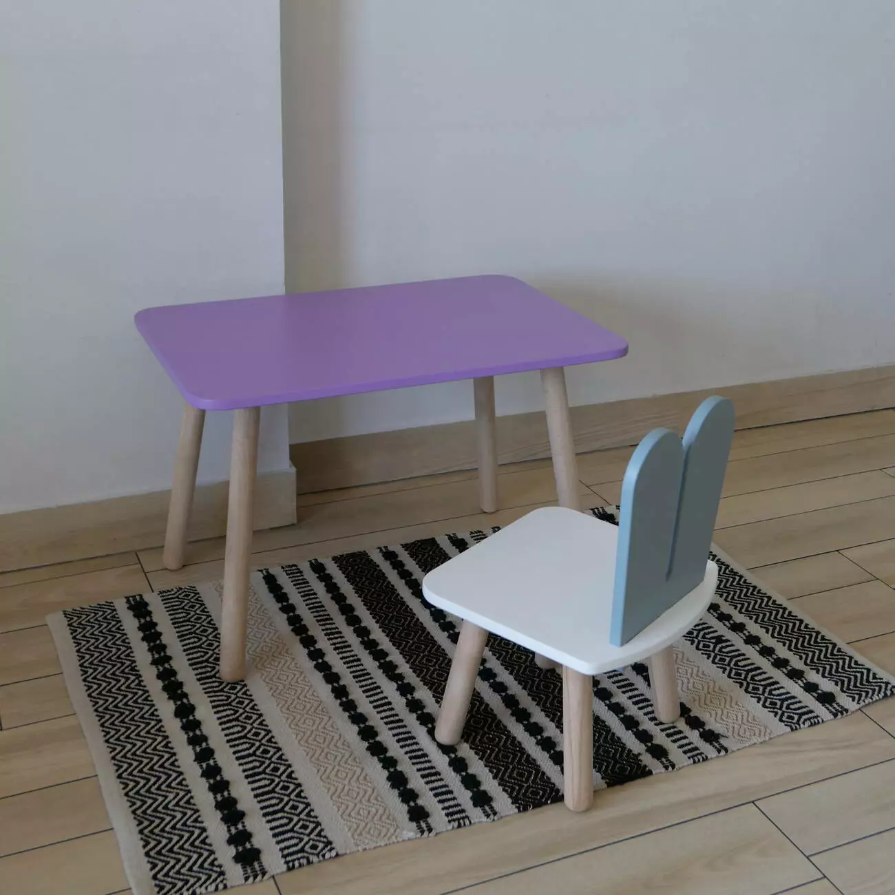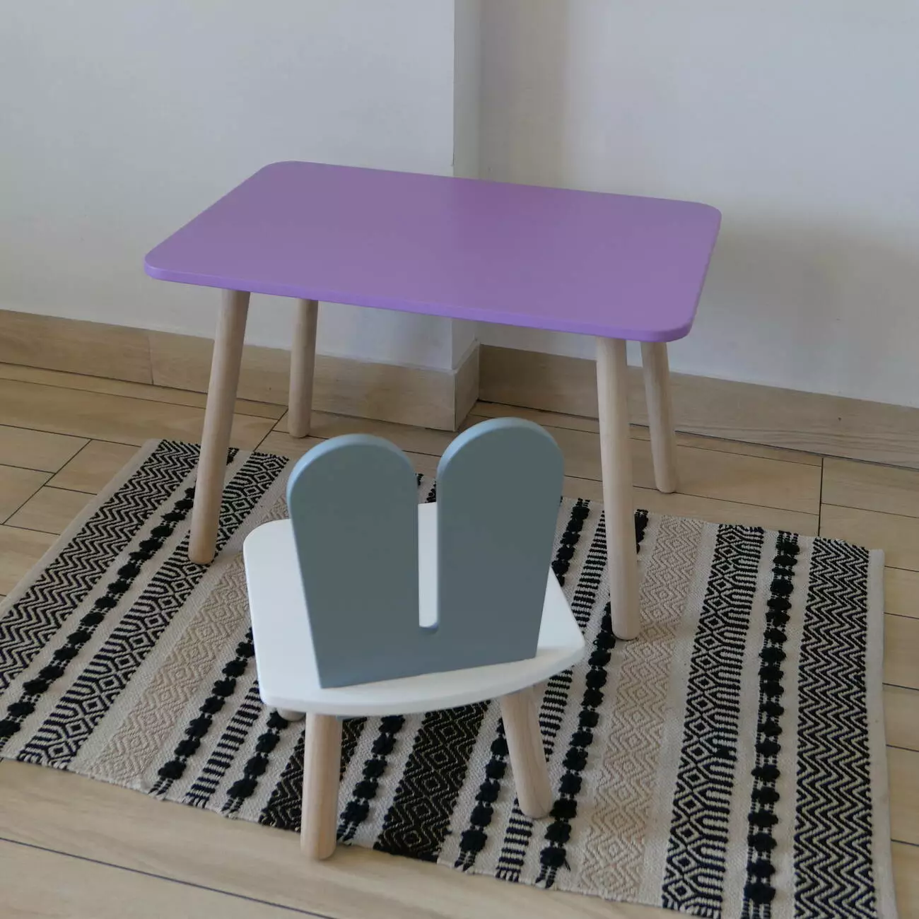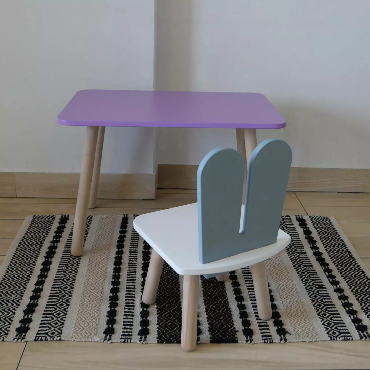 Комплект стіл та стул дитячий ChildWood - Set Стіл бузковий прямокутний + стілець білий сірий Зайчик (Фанера)