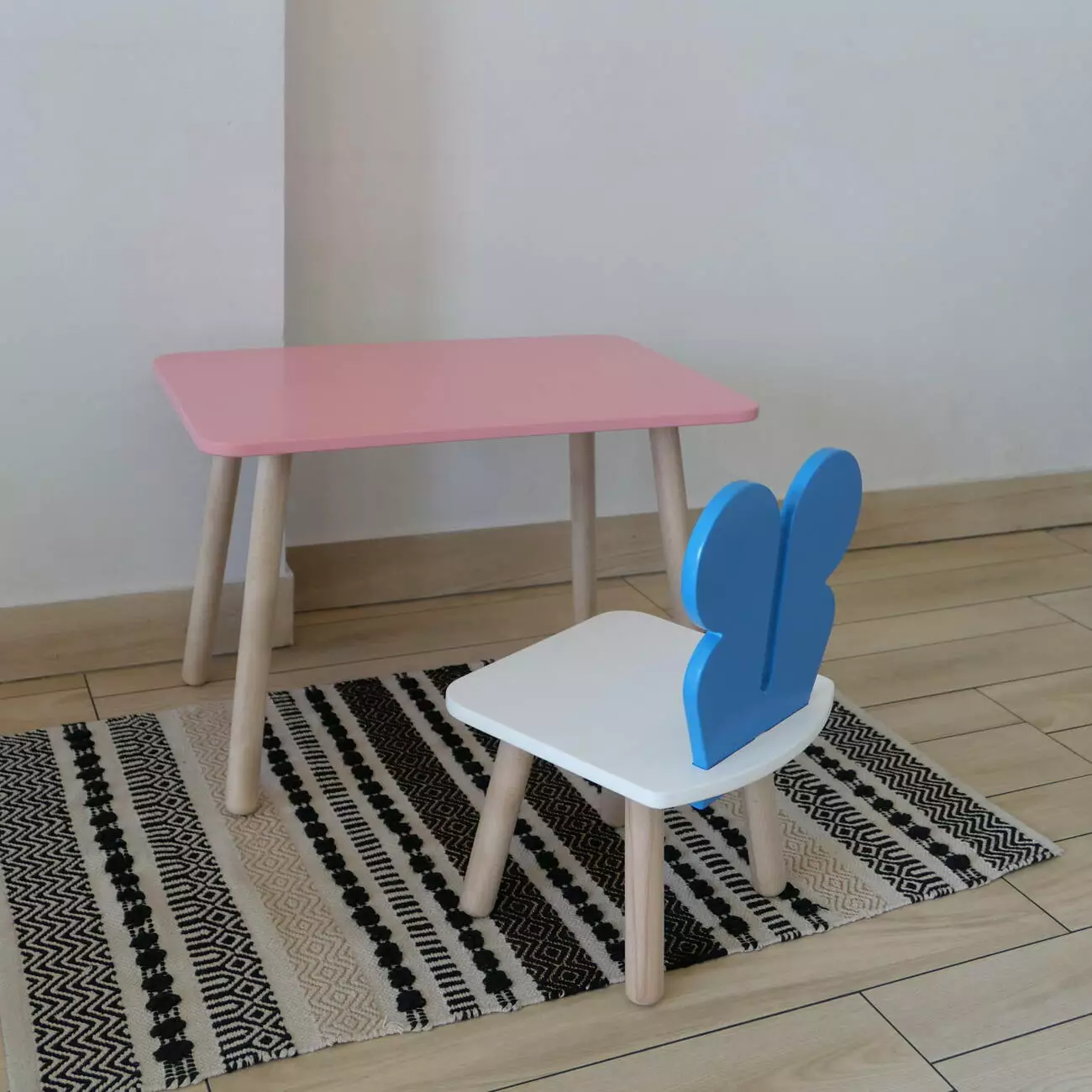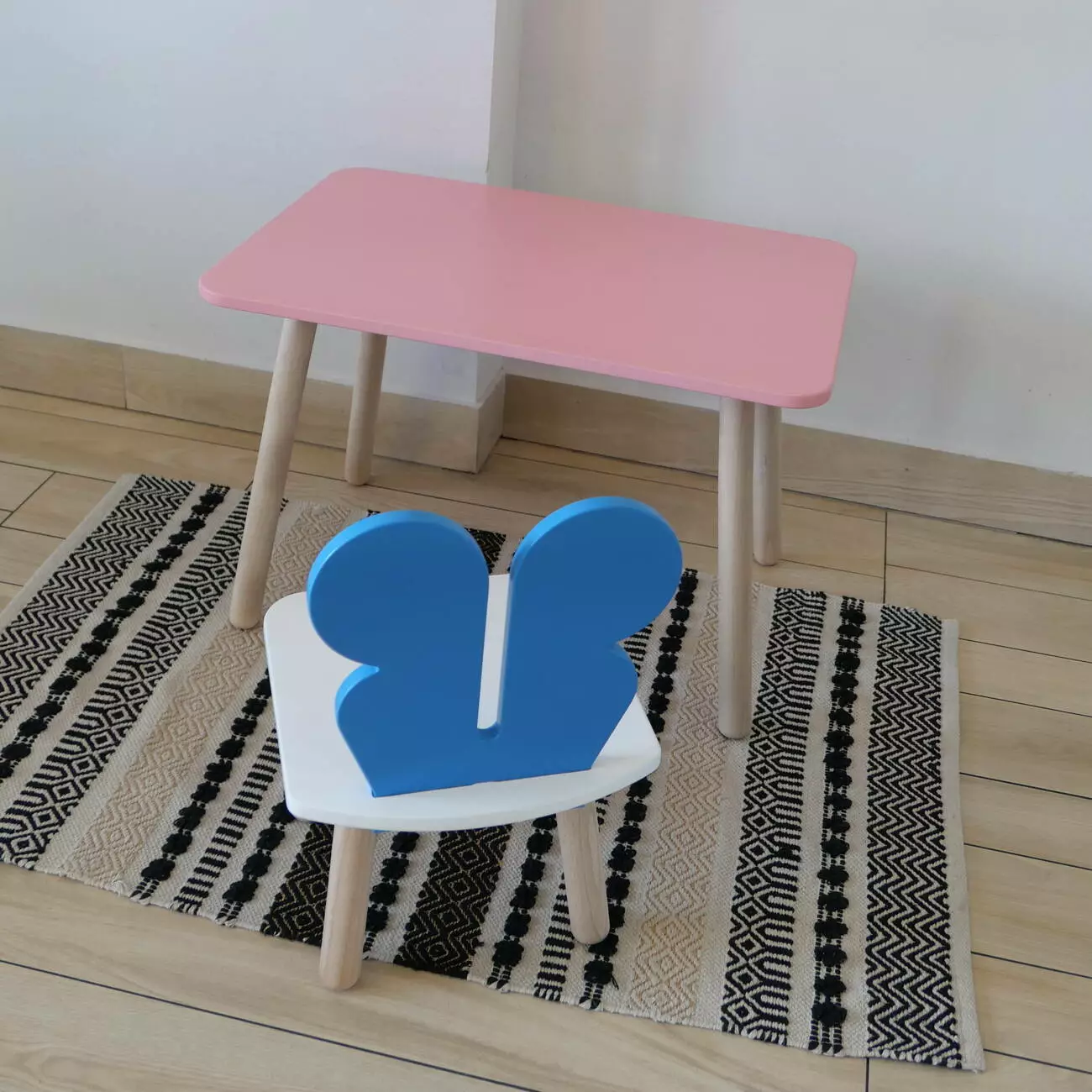 Комплект стіл та стул дитячий ChildWood - Set Стіл рожевий прямокутний + стілець білий блакийний Метелик (Фанера)