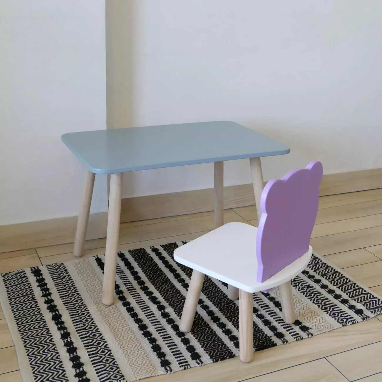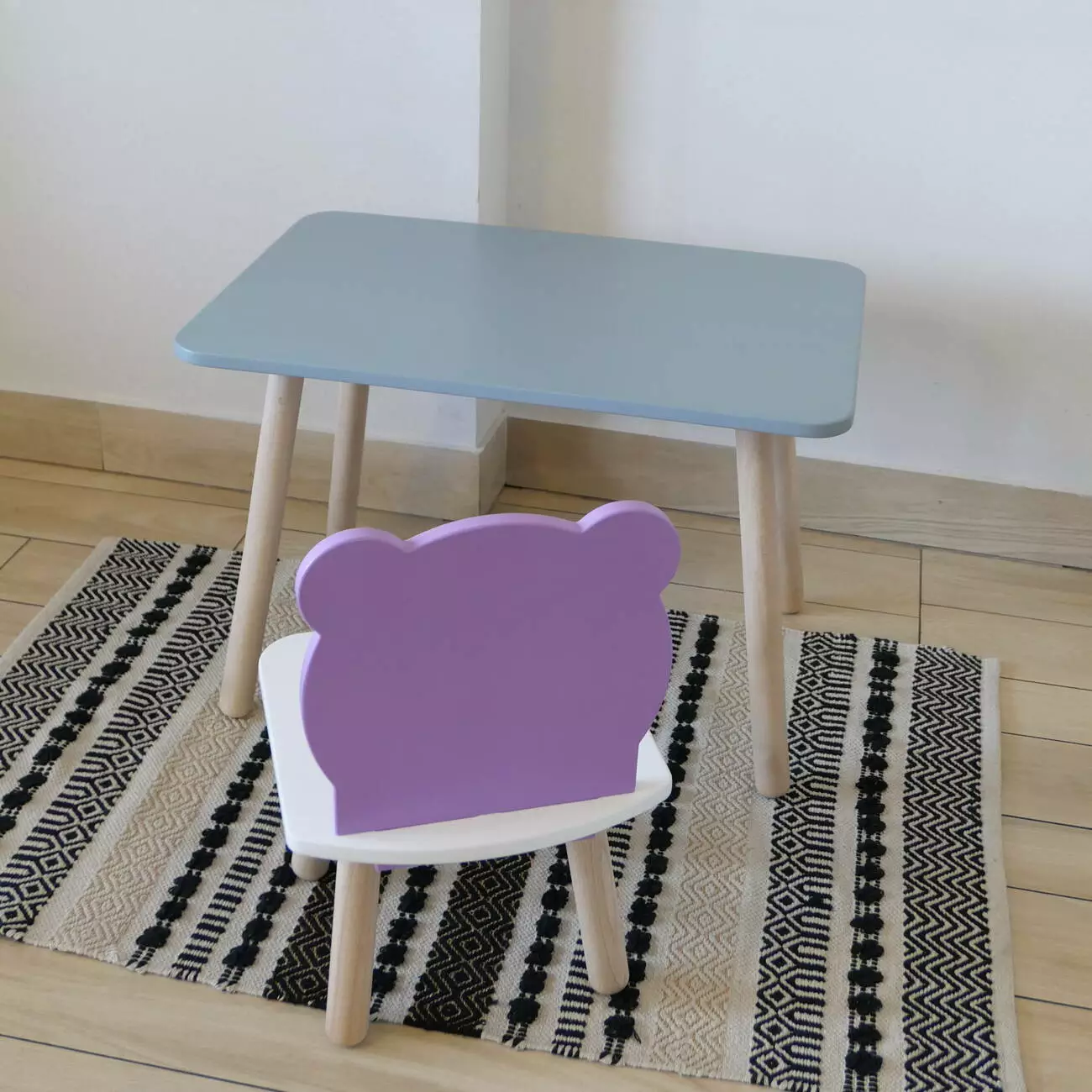 Комплект стіл та стул дитячий ChildWood - Set Стіл сірий прямокутний + стілець білий бузковий Ведмедик (Фанера)