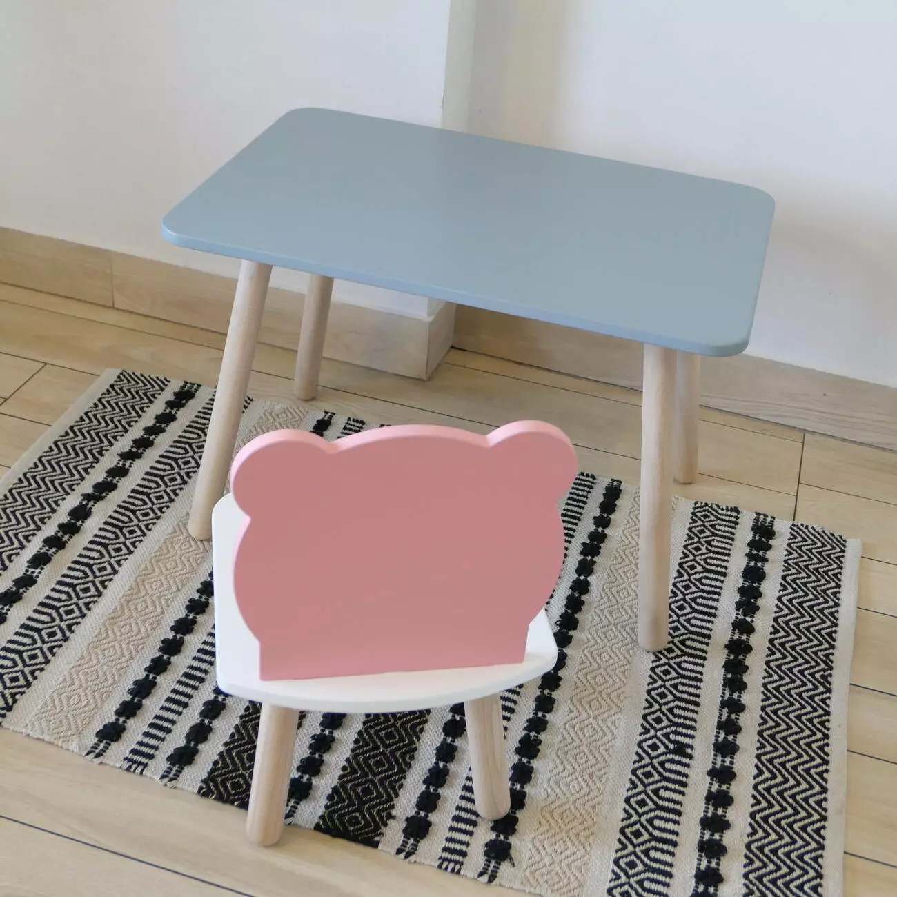 Комплект стіл та стул дитячий ChildWood - Set Стіл сірий прямокутний + стілець білий рожевий Ведмедик (Фанера)