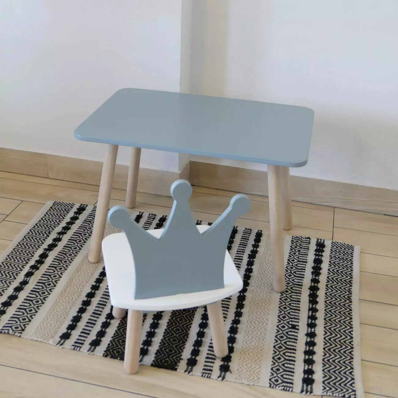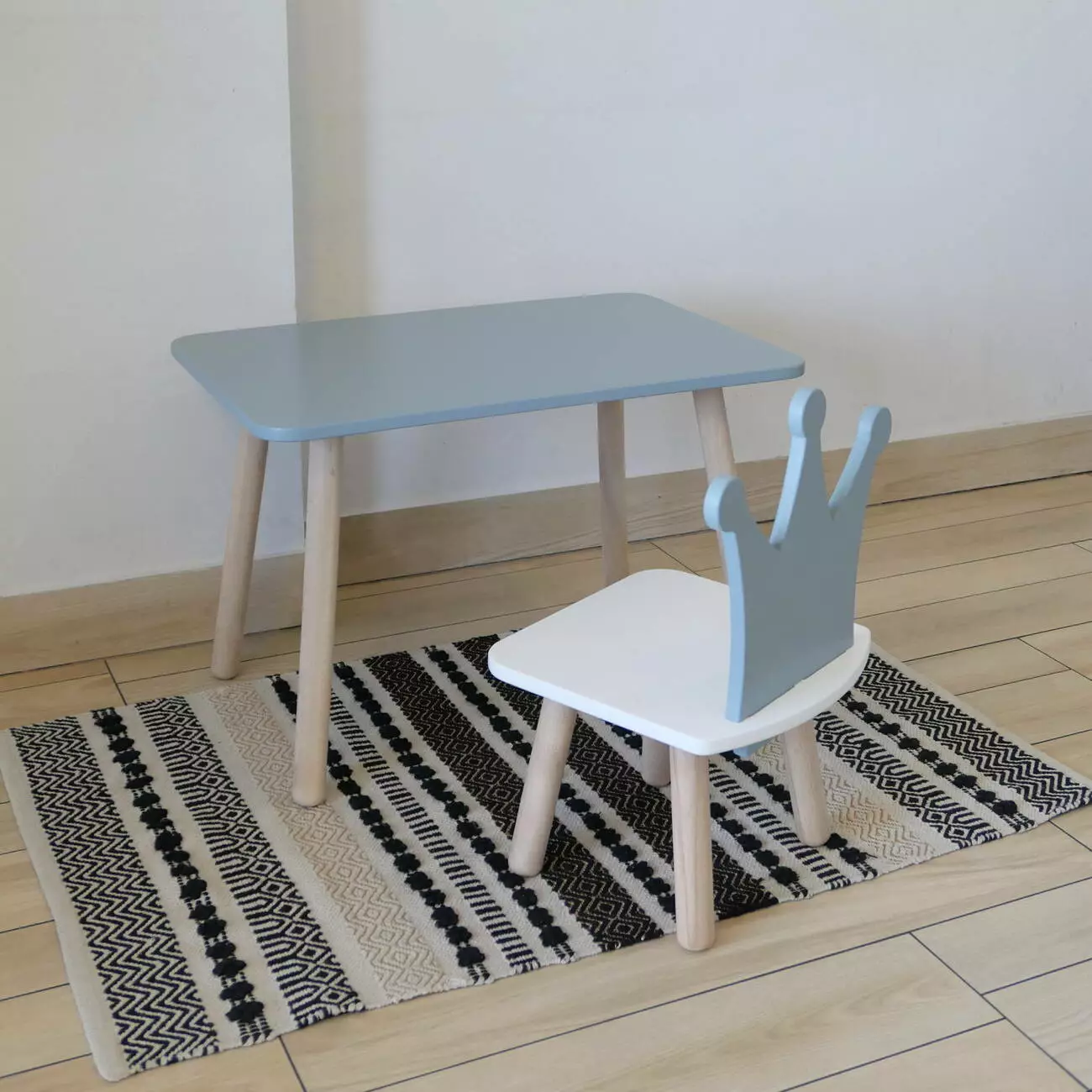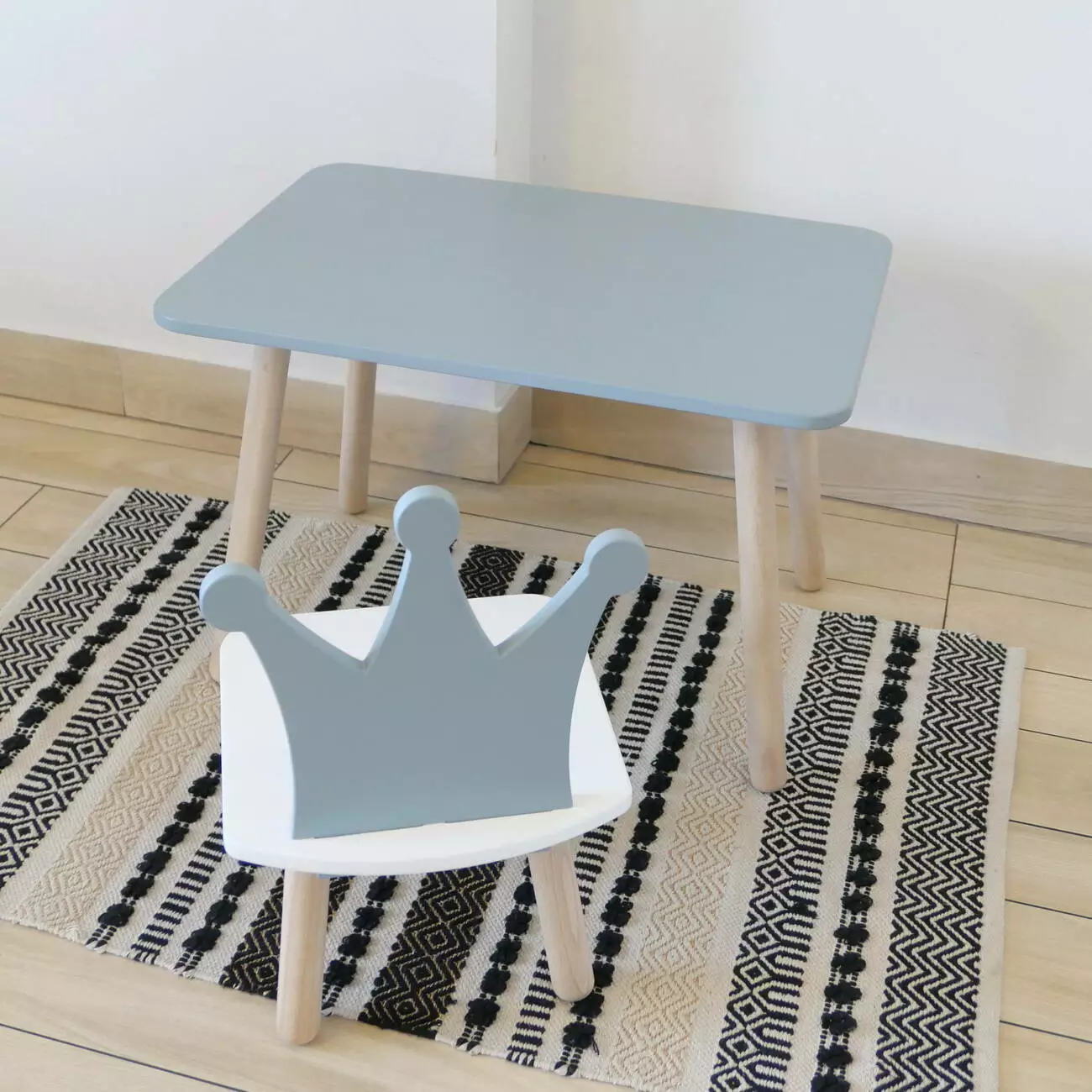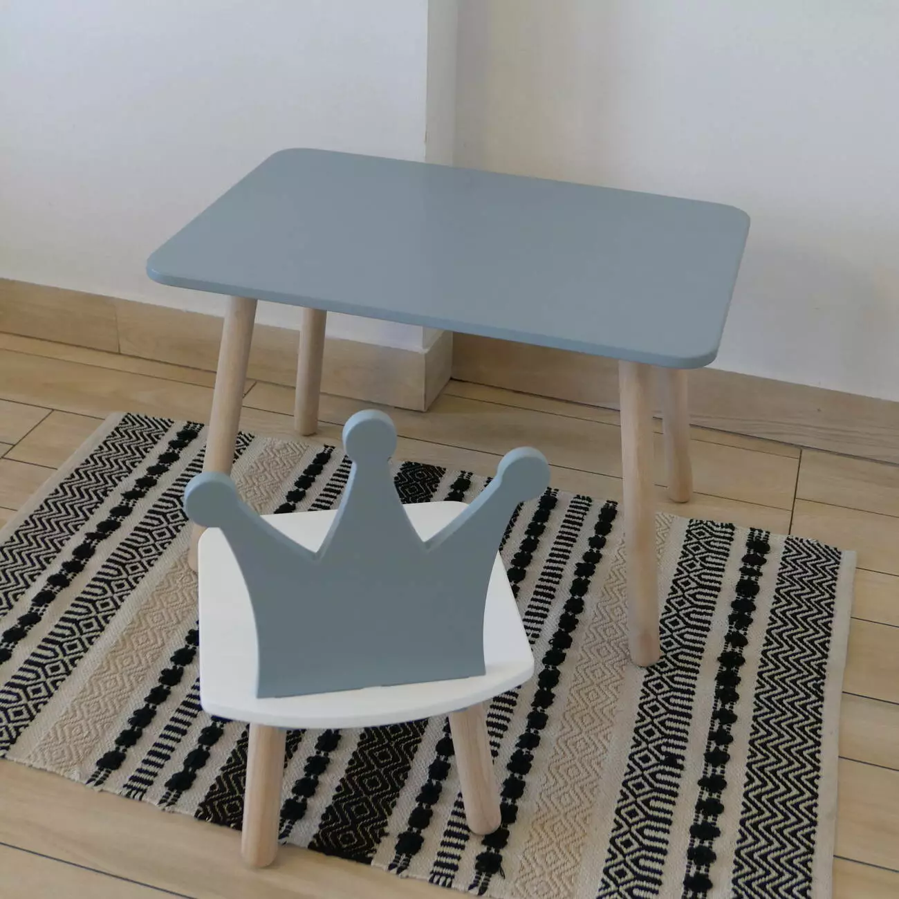 Комплект стіл та стул дитячий ChildWood - Set Стіл сірий прямокутний + стілець білий сірий Корона (Фанера)