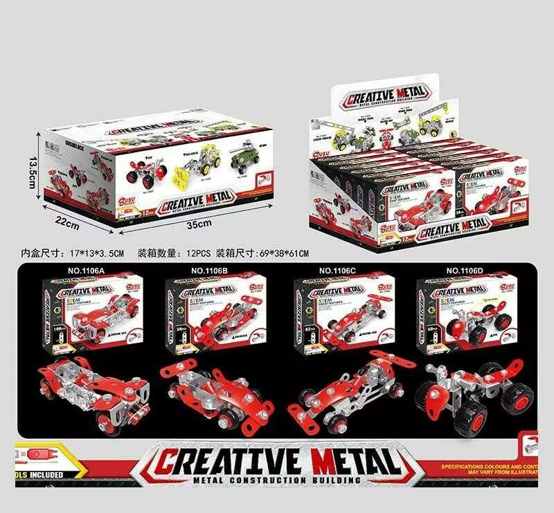 Конструктор 1106 (12/2) ЦІНА ЗА 12 ШТУК В БЛОЦІ, 50-100 деталей, металевий, в коробці