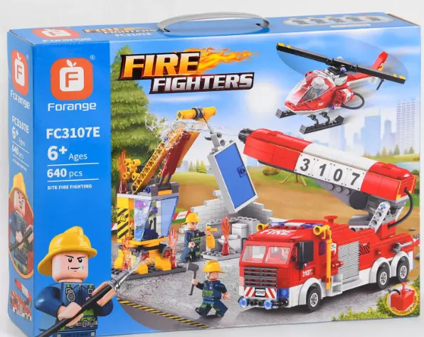 Фотография 1 товарной позиции интернет-магазина детских игрушек www.smarttoys.com.ua Конструктор FC 3107 E (18/2) “Пожежа на будівельному майданчику”, 640 деталей, помпове накачування води, в коробці