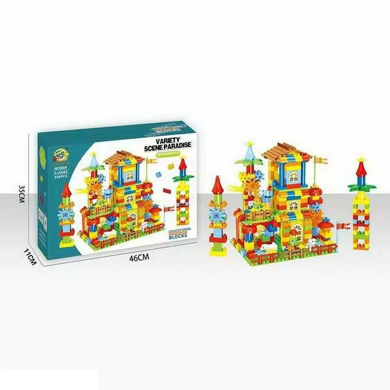 Home > Catalog > Toys > Constructors > Конструктор MC 858 (12) 308 елементів, 2 великі основи, фігурки людей і тварин, дах, вікна, огорожа, шестерінки, в коробці wholesale