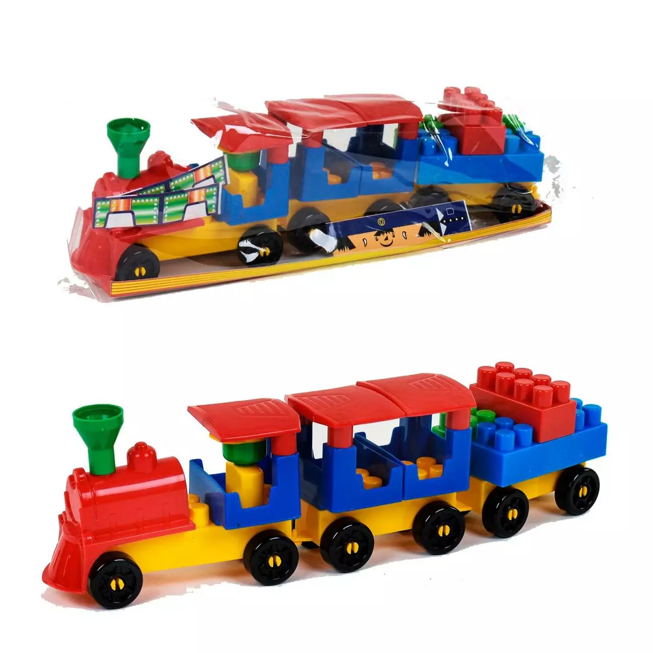Весёлый поезд - конструктор с 2-мя вагончиками и машинистом.