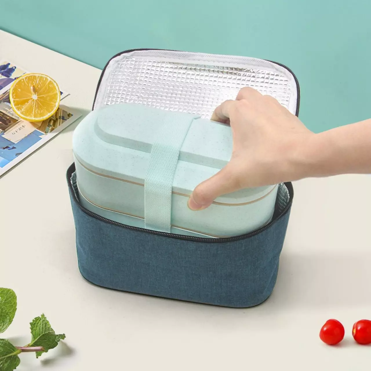 У комплект входить тканинна термосумка з внутрішнім фольгованим