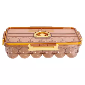 Контейнер-лоток для зберігання яєць виготовлений із прозорого пластику, що дозволяє легко контролювати кількість яєць без потреби відкривати кришку. Він призначений для зберігання 18 яєць, що робить його зручним рішенням для тих, хто купує продукти про запас або готує великі об’єми страв. Продумана форма осередків запобігає перекочуванню та пошкодженню яєць, навіть під час транспортування.