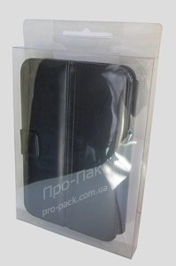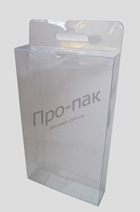 Пластиковая упаковка прямоугольной формы, полностью прозрачная. С задней части имеет удлиненую стенку с евроотверстием. Такую упаковку можно вешать на витрине. Коробка поставляется в разобранном виде, собирается на замках за несколько секунд. Работаем по всей Украине, производство упаковки в Днепропетровске.