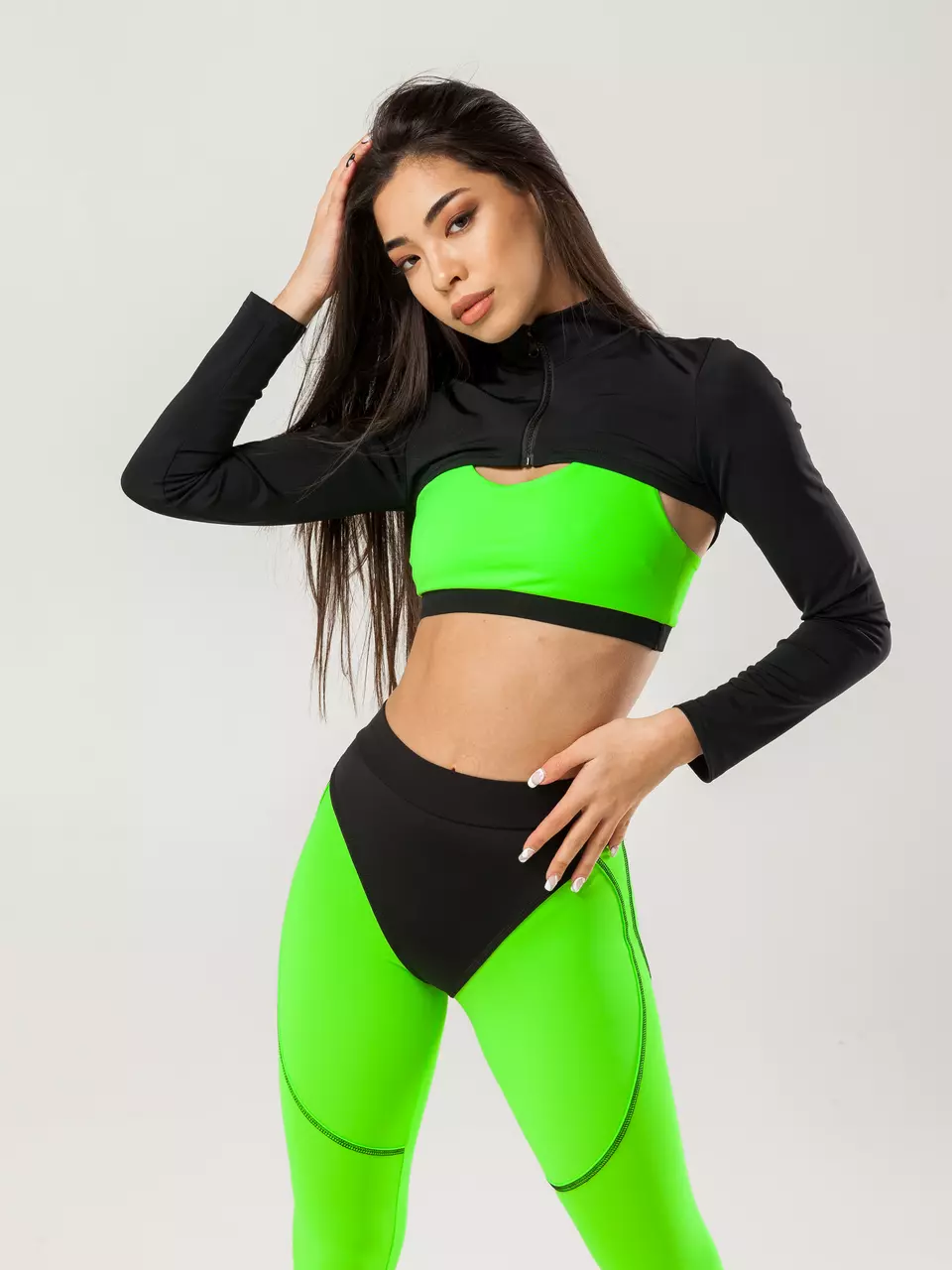 Короткий спортивний жіночий рашгард на блискавці - чорний