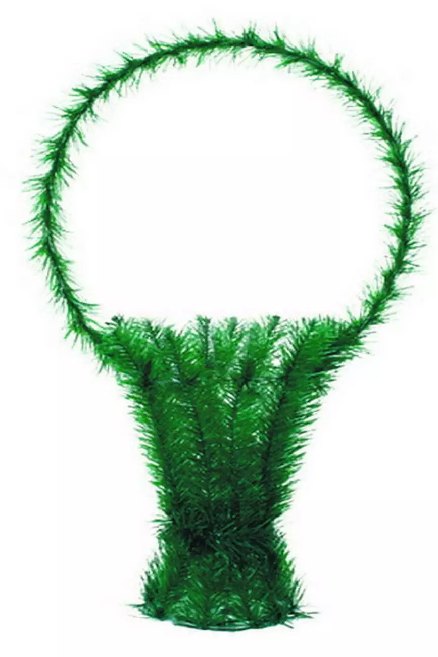 Кошик зі штучної хвої з вазой з одинарною ручкою. Стаканчик заплітається по колу відрізками хвої, розмір 70*39*18 см.