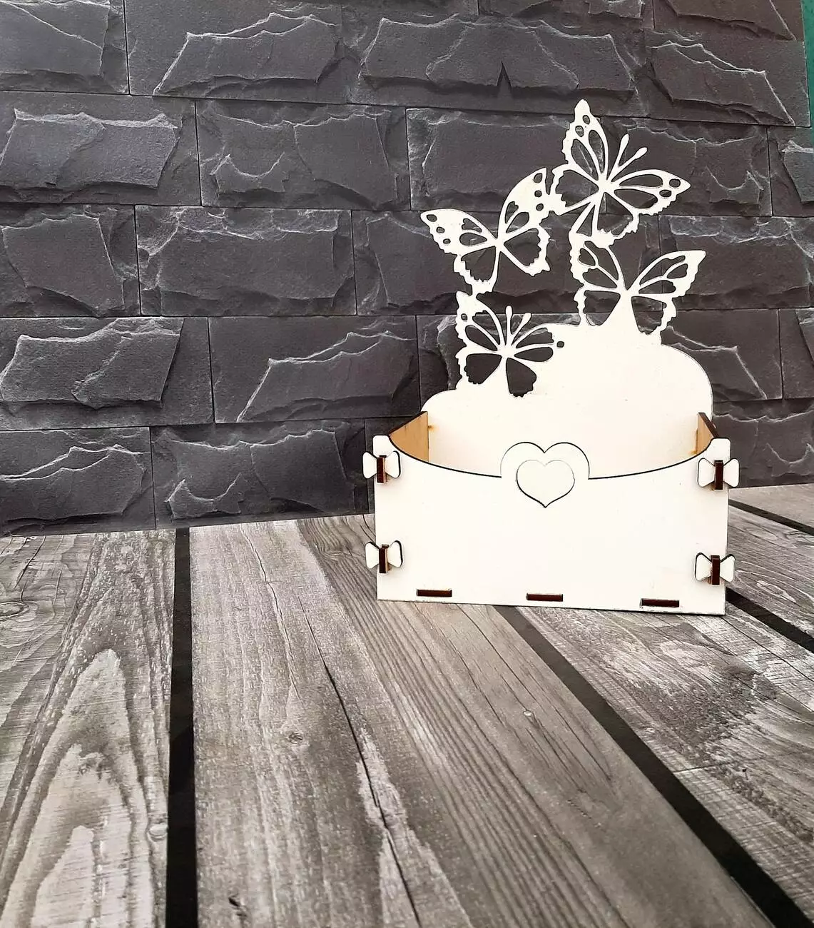Кошик для квітів виготовлений з міцного мдф білого кольору.