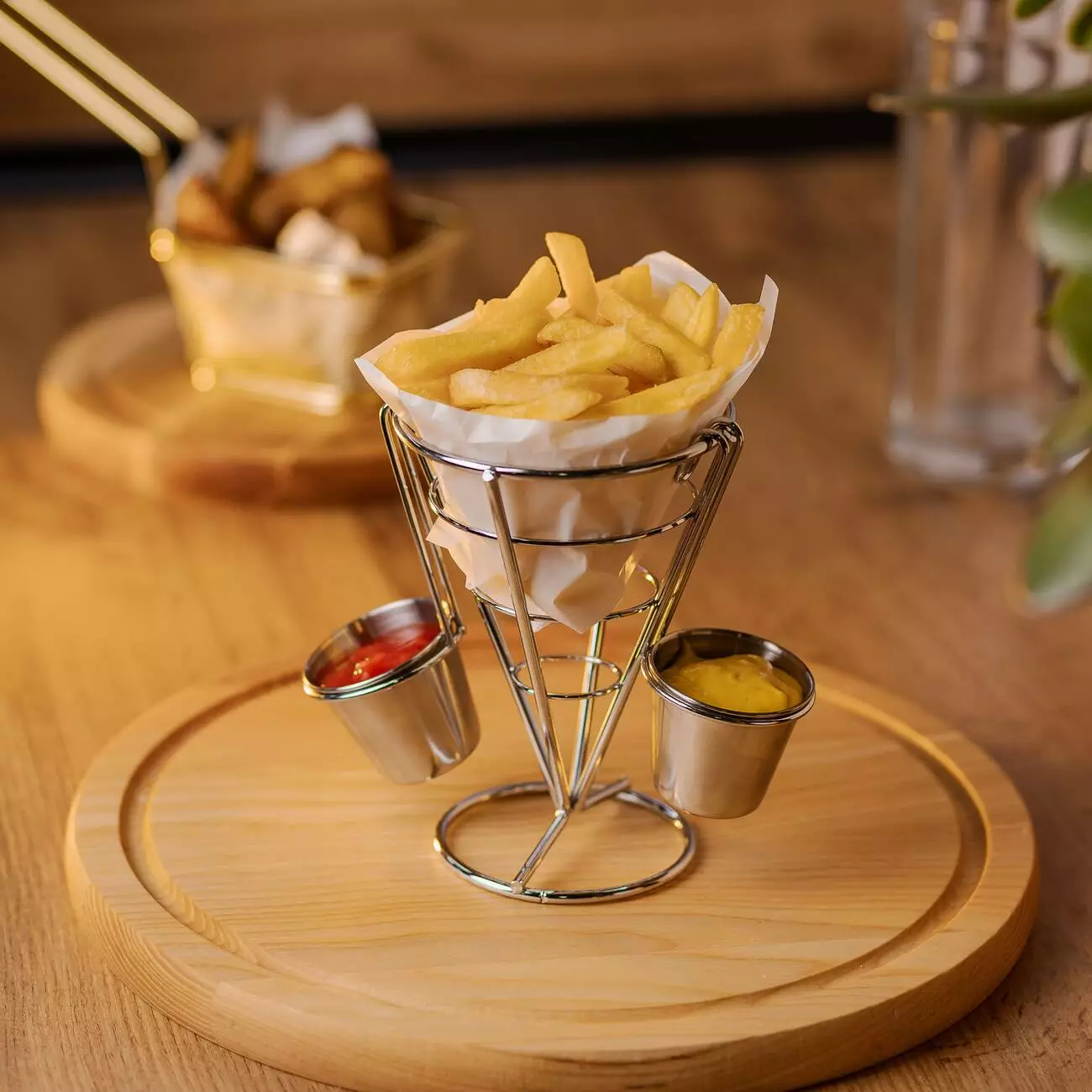 Конусний кошик для картоплі фрі з соусниками - стильний і