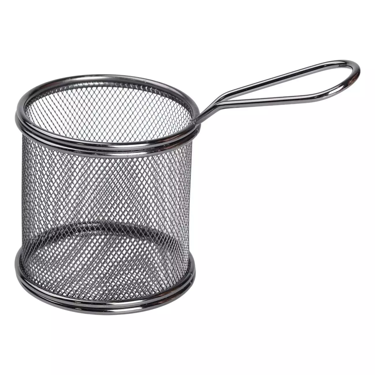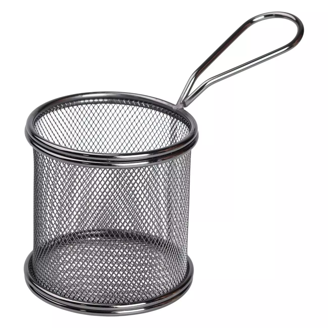 Кошик ідеально підходить для картоплі фрі, чіпсів, хлібних паличок та інших закусок. Його міцний металевий каркас забезпечує стійкість і легкість, а покриття захищає від вологи та зносу. Завдяки цьому аксесуар добре підходить як для домашнього використання, так і для сервірування в кафе чи ресторанах.