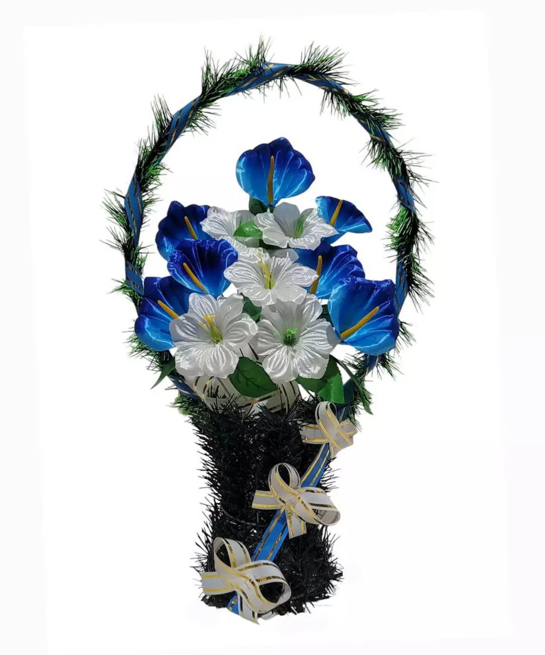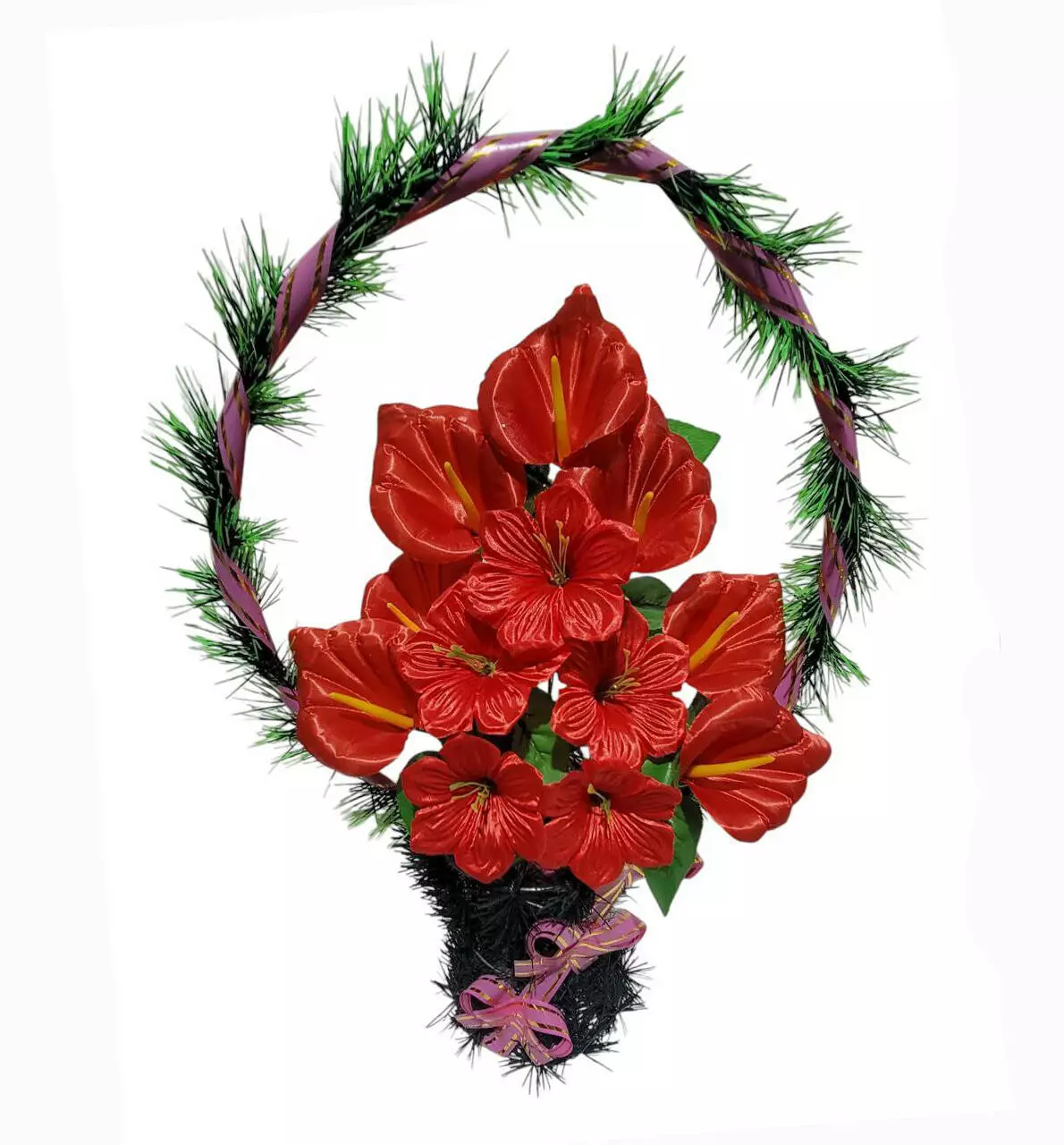 Ритуальний кошик зі штучної хвої розміром 60*33*13 см. Кошик