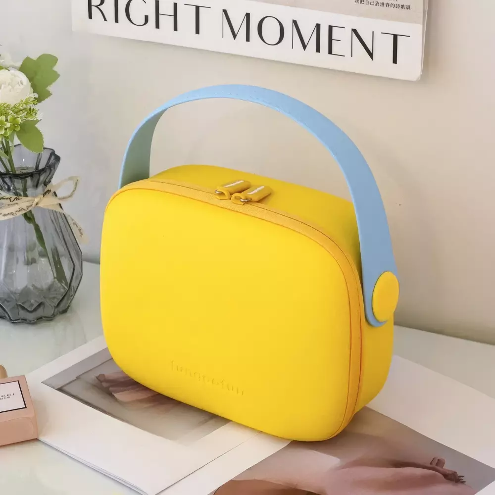 делает косметичку стильным аксессуаром, а жёлтый цвет добавляет