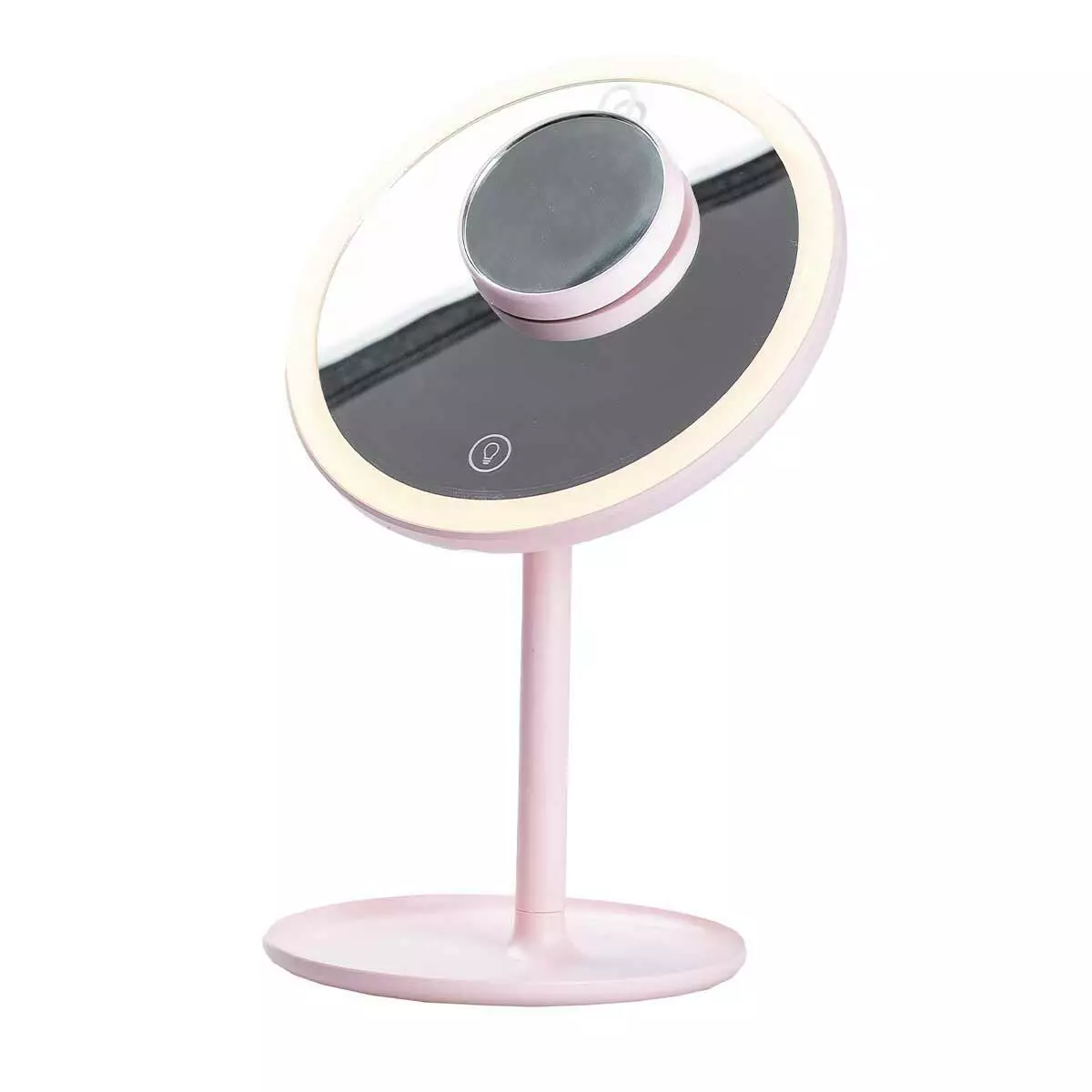 Косметичне дзеркало з LED-підсвіткою та збільшенням, рожевий
