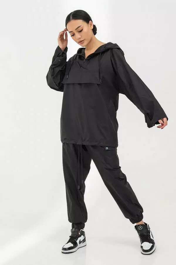 Костюм спортивний з плащової тканини від брендового виробника German Volf, склад якої 100 % поліестер- це ідеальний варіант на холодну дощову погоду. Модель оверсайз, яка не сковує ваші рухи, та дарує відчуття комфорту в непогоду. Підійде на всі типи фігур в наявності такі розміри(xs,s,m,l,xl). Великий капюшон захищає від вітру, низ куртки регулюється за допомогою шнурка, що дозволяє регулювати довжину моделі. Штани на високій посадці, тип крою оверсайз, з резинкою з низу. По боках розміщені дві кишені для ваших дрібничок. Цей костюм забезпечить вам комфорт і стильність упродовж усього дня, його витончені лінії та зручний дизайн допоможуть вам почуватися чудово впродовж усього дня. Куртка анорак легка вітрозахисна, вільного крою, доступна для замовлення різних кольорів: сірий, м'ята, коричневий, чорний.
