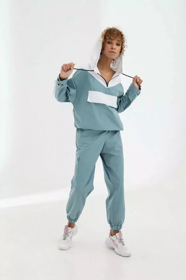 Костюм спортивний з плащової тканини від брендового виробника German Volf, склад якої 100 % поліестер- це ідеальний варіант на холодну дощову погоду. Модель оверсайз, яка не сковує ваші рухи, та дарує відчуття комфорту в непогоду. Підійде на всі типи фігур в наявності такі розміри(xs,s,m,l,xl). Великий капюшон захищає від вітру, низ куртки регулюється за допомогою шнурка, що дозволяє регулювати довжину моделі. Штани на високій посадці, тип крою оверсайз, з резинкою з низу. По боках розміщені дві кишені для ваших дрібничок. Цей костюм забезпечить вам комфорт і стильність упродовж усього дня, його витончені лінії та зручний дизайн допоможуть вам почуватися чудово впродовж усього дня. Куртка анорак легка вітрозахисна, вільного крою, доступна для замовлення різних кольорів: сірий, м'ята, коричневий, чорний.