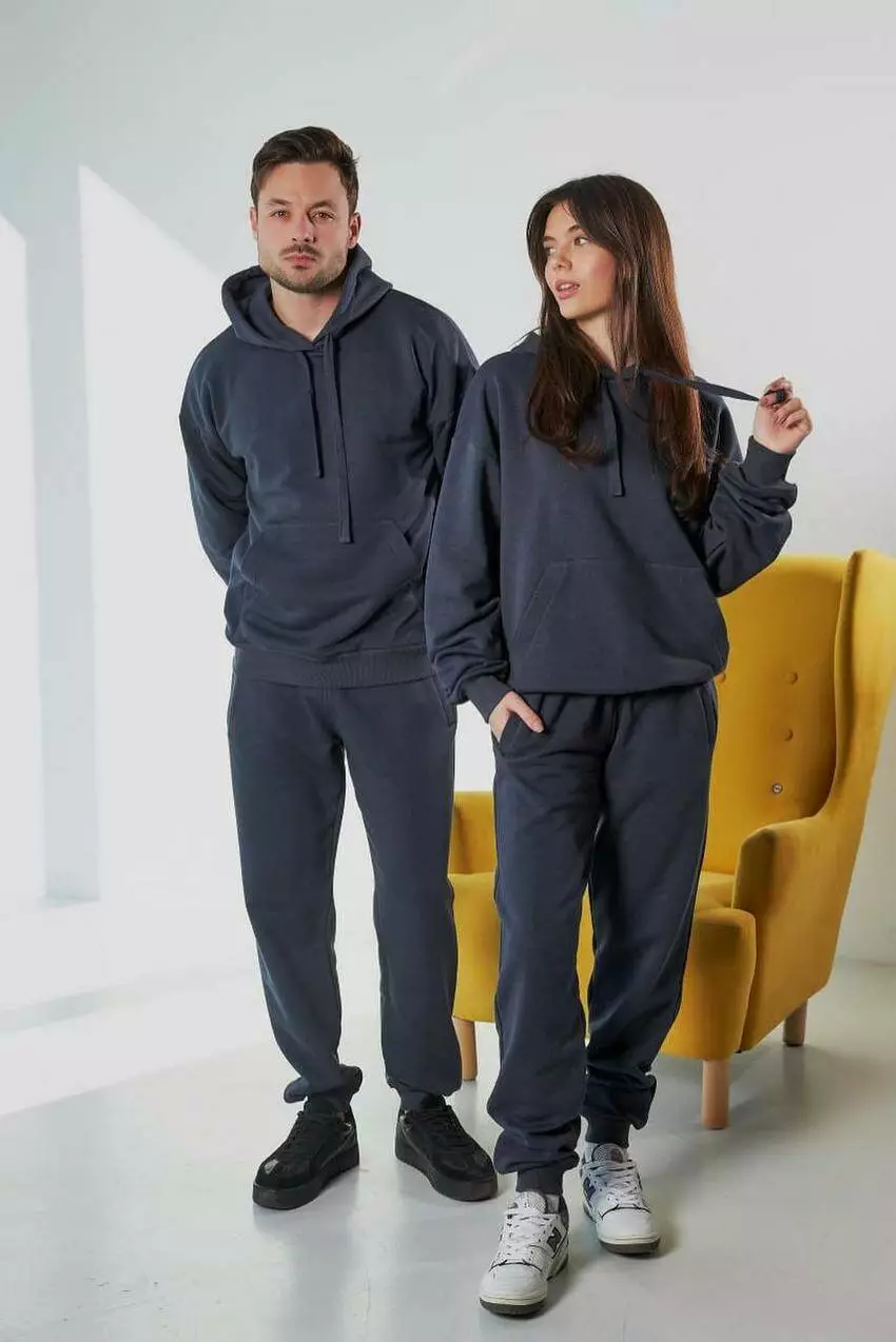 костюма: Худі: об’ємний крій з капюшоном, кишенею-кенгуру,