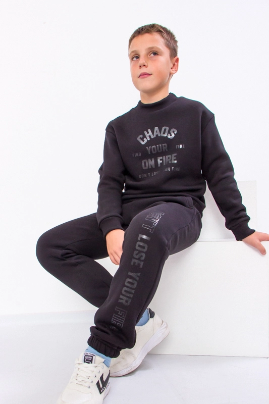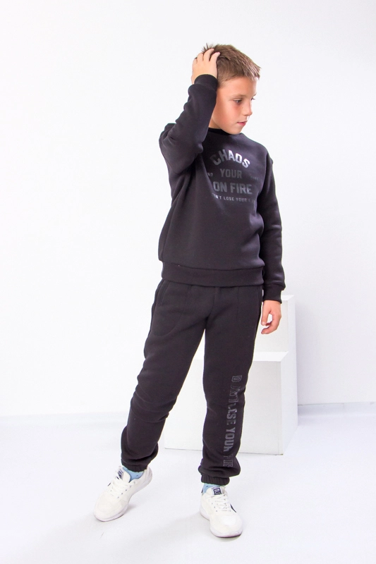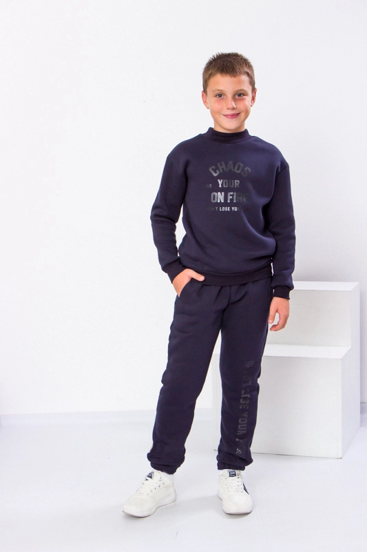 Костюм спортивний для хлопчика від ТМ ТРИКОТАЖНИЙ КРАЙ виконаний з трикотажного полотна-футер 3х нитки з начосом з вмістом 80%-бавовни з добавкою 20%-поліестру, для підвищення зносостійкості виробу, а також для запобігання витягу колінних і ліктьових частин. Демісезонний комплект - ідеальний дитячий одяг для осені, зими, весни, - включає толстовку і штани джоггери з кишенями. Толстовка з манжетами на горловині, рукавах і по низу виробу-має відмінну довжину-кофта прикриє поперек дитини. Штани із середньою посадкою по низу та на поясі широка резинка, для більшого комфорту в поясі є шнурок. Непомітний принт, виконаний у техніці шовкотрафаретного друку робить образ завершеним. Костюм добре підійде і для уроків фізкультури, і для прогулянок.