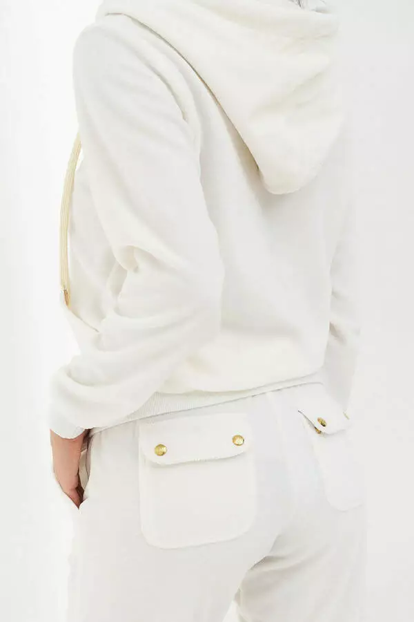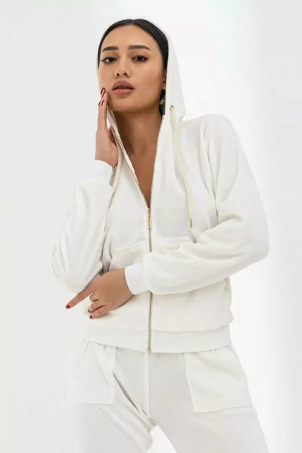 Освіжіть свій гардероб з цим елегантним спортивним велюровим костюмом. Кофта з капюшоном та кишенями, широкі штани із регульованою талією, кишені з переду і з-заду, роблять його стильним і практичним. Тканина велюр, склад якої (80% бавовни, 20% поліестер) забезпечує приємний контакт зі шкірою та дозволяють вільно рухатися. Підійде на всі типи фігур в наявності такі розміри(xs,s,m,l,xl). Забезпечує вам вибір між класичним чорним та бездоганним білим кольорами. Тип моделі - вільний крій, а додатковий шарм надає золотиста блискавка та фурнітура на кишенях з-заду. Оберіть цей костюм, щоб додати розкіш і стиль у вашому повсякденному образі.