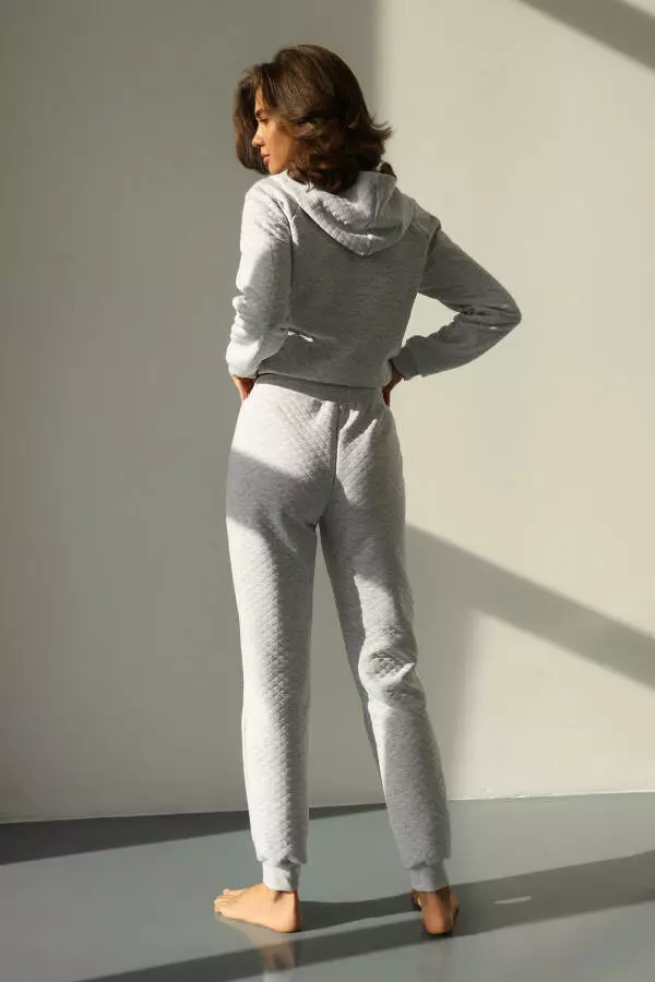 Костюм капітоній від брендового виробника German Volf складається з теплої кофти з застібкою на блискавці спереду та штанів-джогерів. Кофта та штани виготовлені з сірого меланжевого матеріалу та мають капюшон та кармани. Костюм ідеально підходить для комфортного та стильного вигляду в холодну погоду.