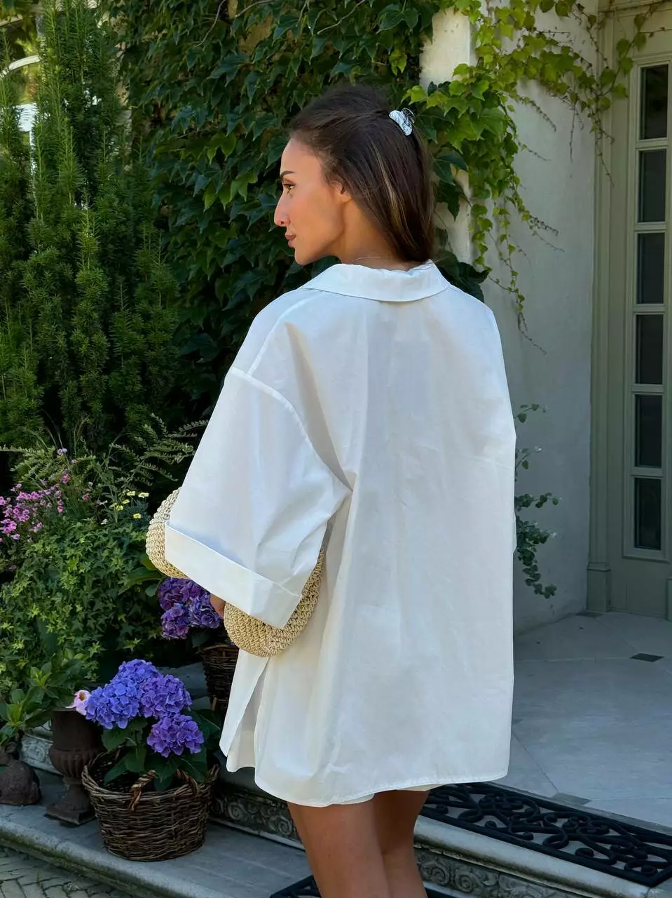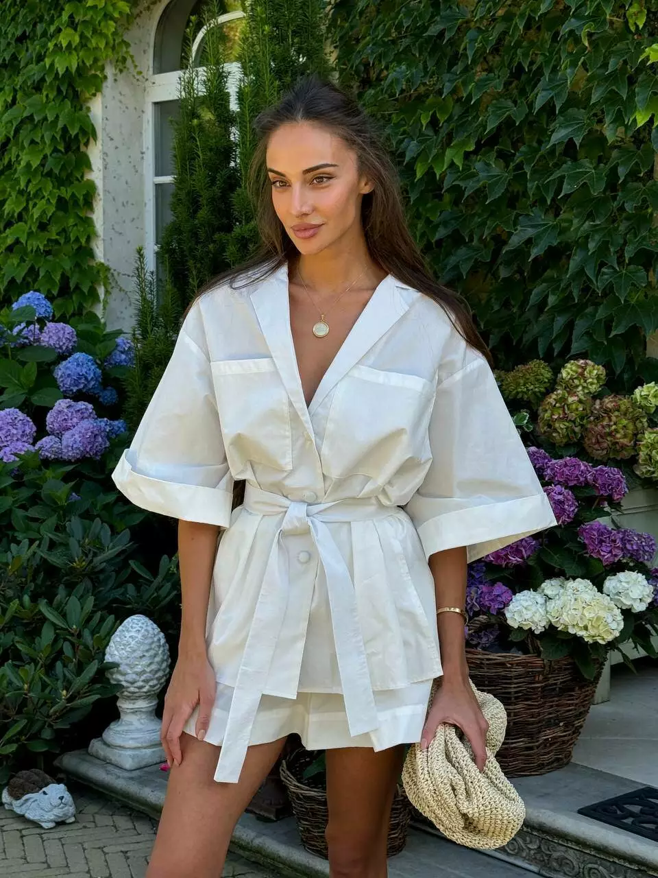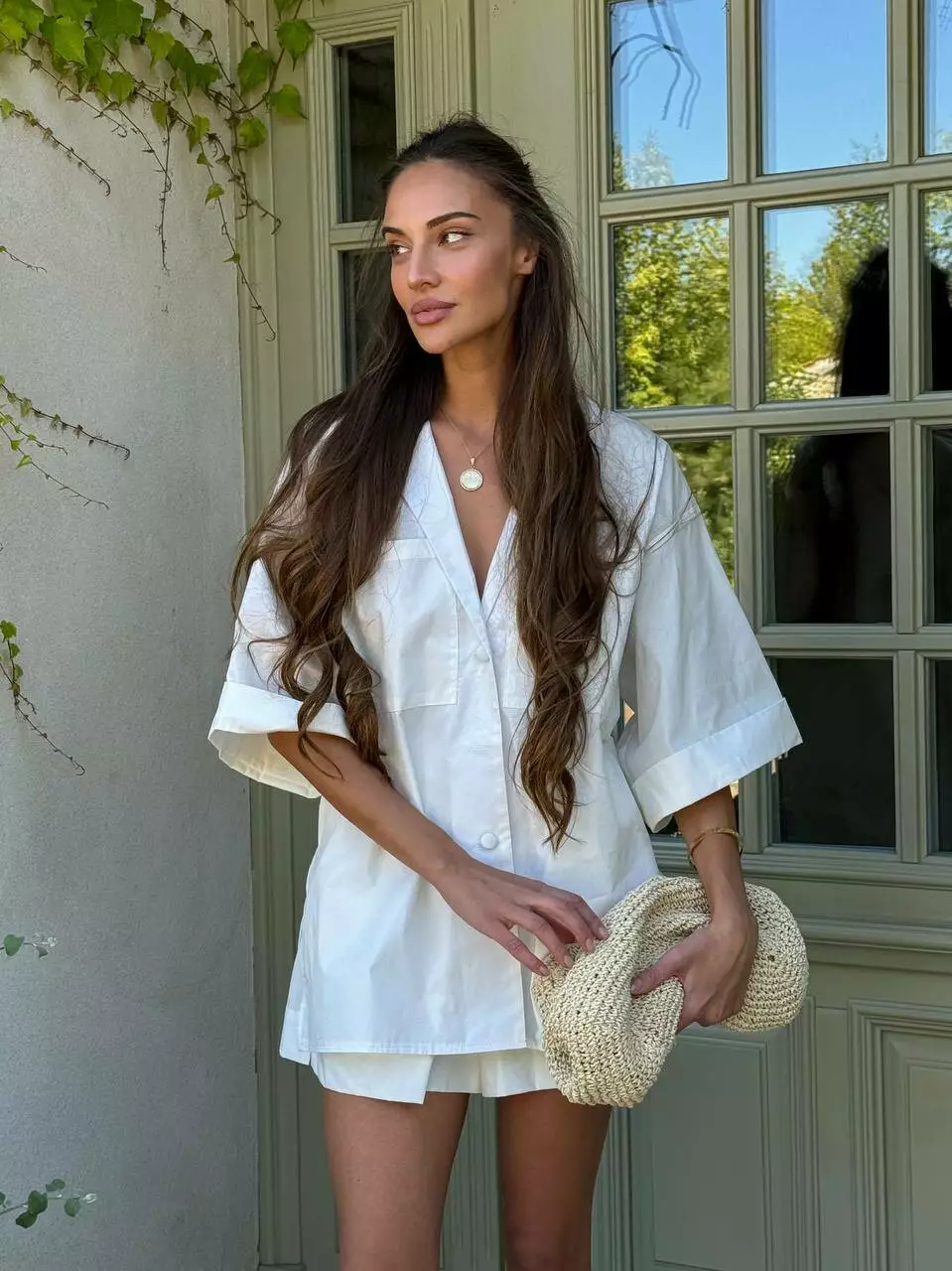 Літній комфортний костюм, в поєднанні широкої сорочки в стилі піджак та прямих шорт.