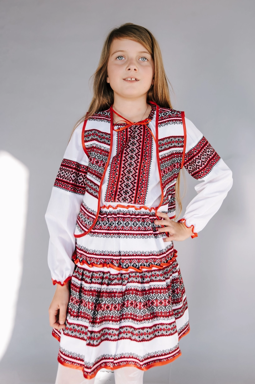 Дитячий вишитий костюм білого кольору із оригінальним