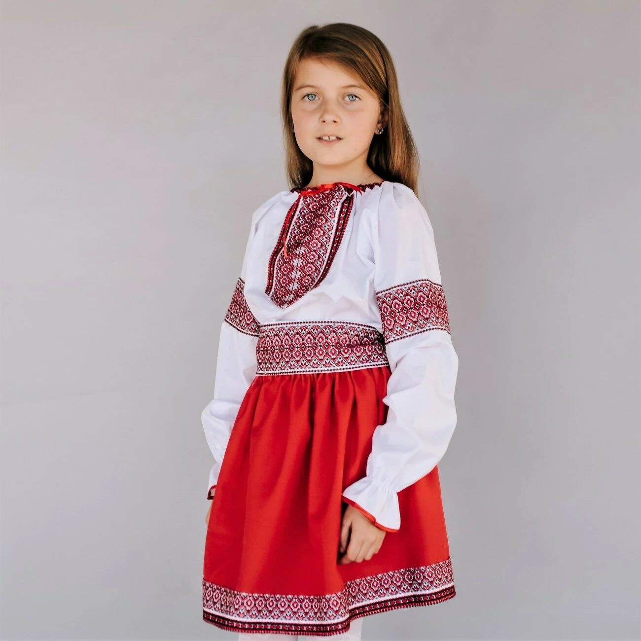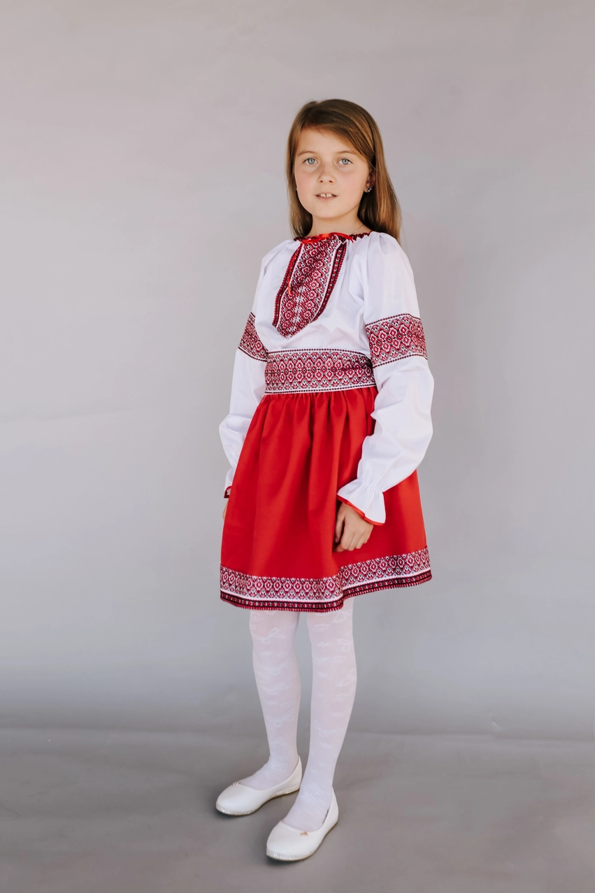 червоною спідничкою та вишивкою від