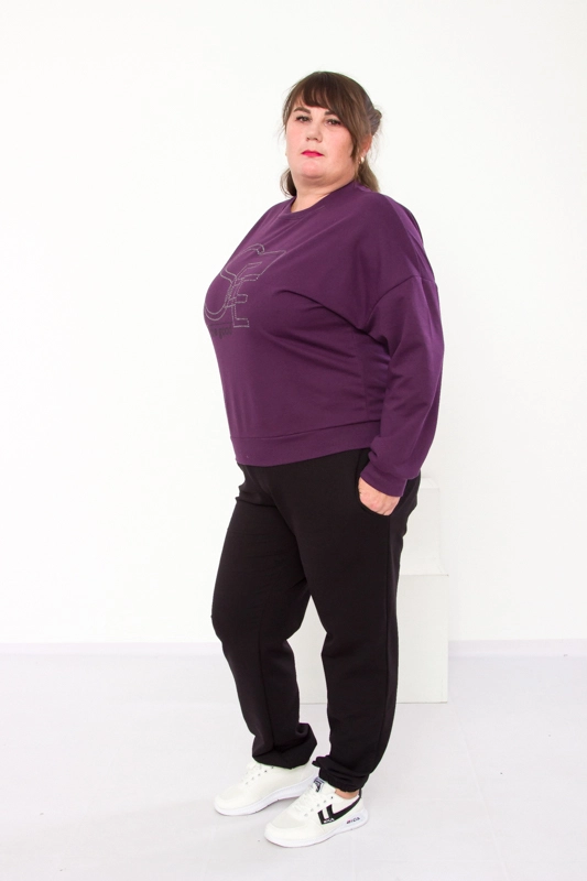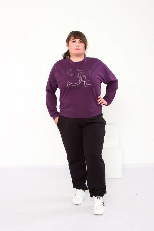 Модний, зручний і сучасний костюм в спортивному стилі. Актуальна модель для повсякденного носіння або активного відпочинку з друзями. Представлений в різноманітній кольоровій гамі. Світшот вільного крою з довгими рукавами на манжетах, декорований оригінальним нагрудним принтом. Штани середньої посадки, по низу пришита резинка для більш комфортного носіння, з боків дві містких кишені. Для пошиття костюму використано змішане полотно - двунитка, в складі якого містяться волокна синтетичного еластану. Така тканина найбільше підходить для створення верхнього одягу, оскільки володіє важливими характеристиками: повітропроникністю, гігроскопічністю, міцністю, еластичністю і зносостійкістю.
