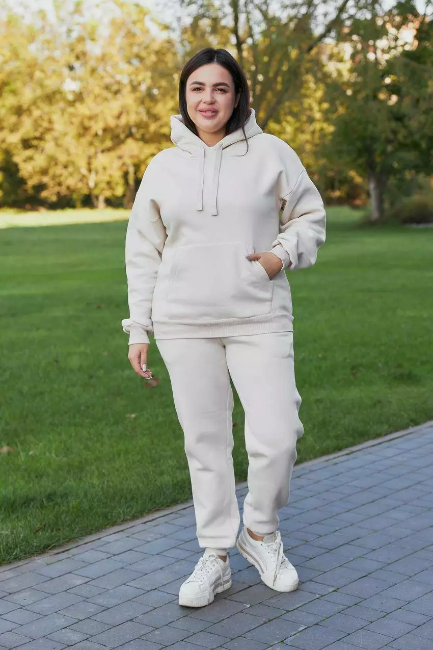 Женский спортивный костюм с начёсом (худи + джоггеры) — тепло, уют