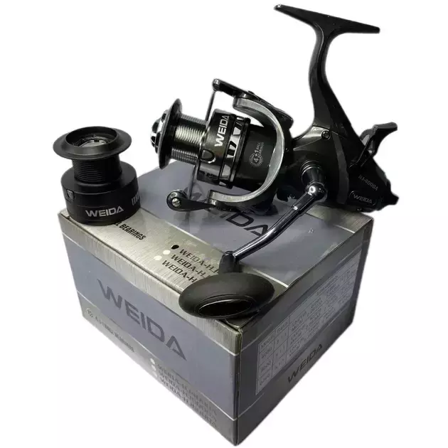 Котушка Weida HJ-5000A — класична коропова модель із системою бейтранер, створена для лову великої риби та роботи на далеких дистанціях. Корпус виготовлений із високоміцного карбопласта, а металева ручка може встановлюватися як під ліву, так і під праву руку.