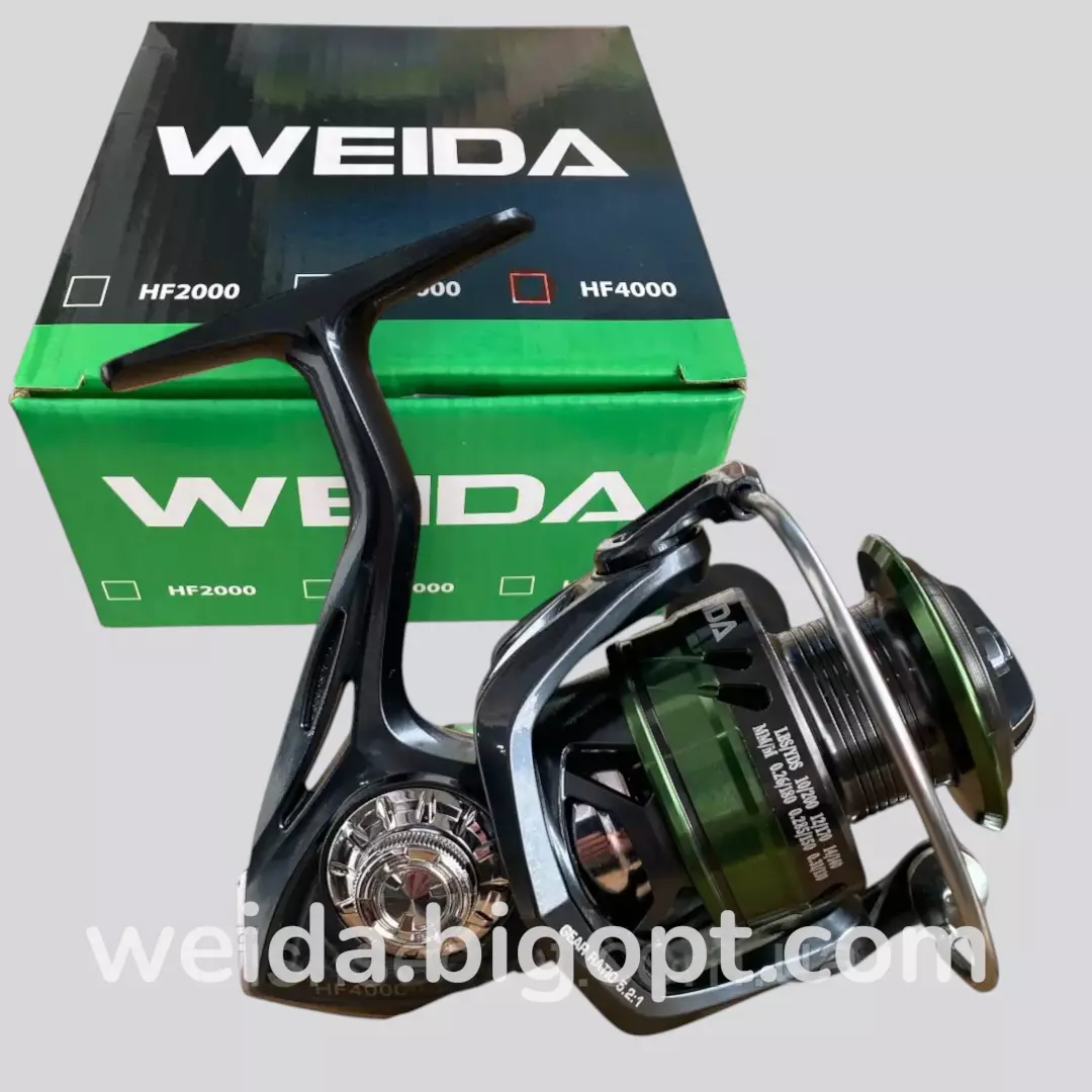 Котушка Weida HF4000 — міцна й надійна безінерційна модель для спінінгової, фідерної та універсальної риболовлі. Оснащена 6+1 підшипником для плавного ходу, металевою шпулею, точним переднім фрикціоном та миттєвим стопором зворотного ходу. Посилена ручка забезпечує впевнене виважування трофейної риби.